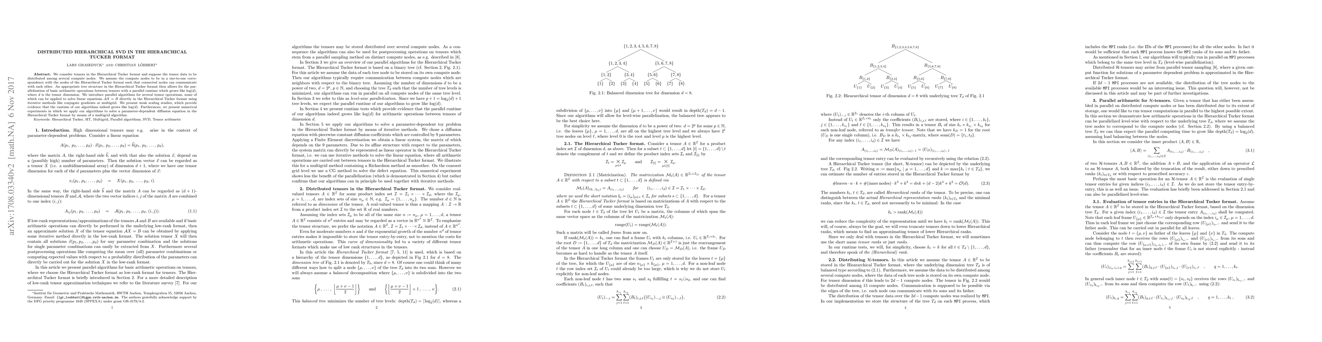 This paper introduces parallel algorithms for tensor operations in the Hierarchical Tucker format, demonstrating a logarithmic runtime scaling with tensor dimension. It applies these algorithms to solve linear equations and parameter-dependent diffusion equations using iterative methods and multigrid techniques.