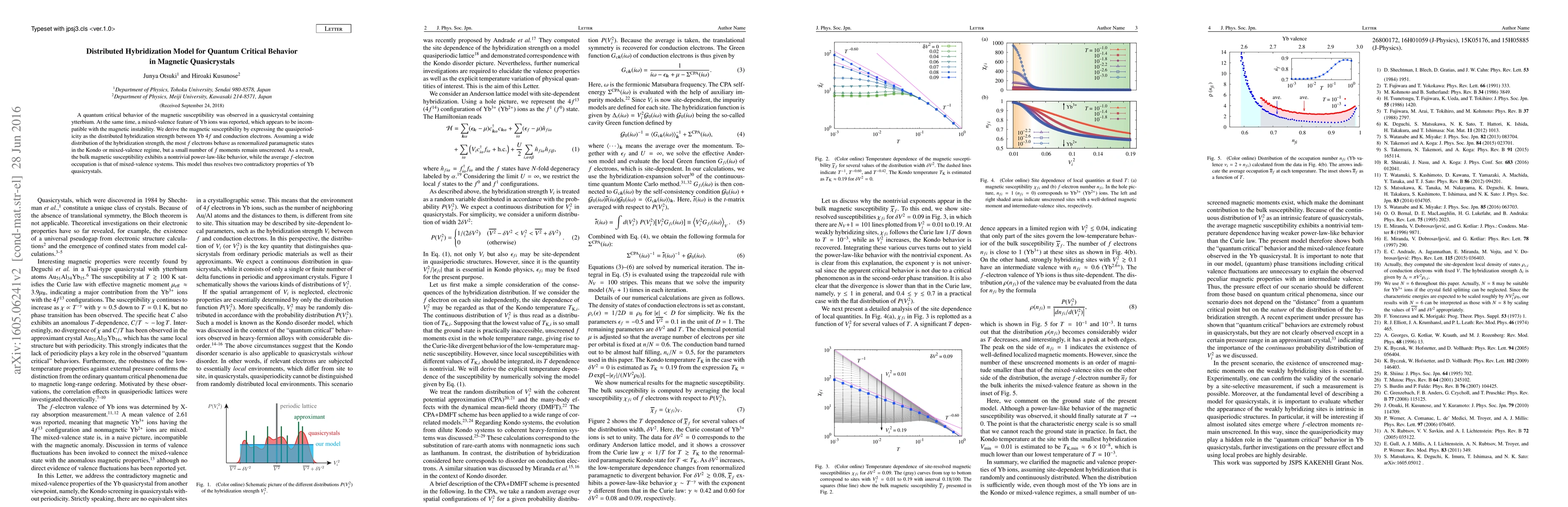 A quantum critical behavior of the magnetic susceptibility was observed in a quasicrystal containing ytterbium. At the same time, a mixed-valence feature of Yb ions was reported, which appears to be incompatible with the magnetic instability. We derive the magnetic susceptibility by expressing the quasiperiodicity as the distributed hybridization strength between Yb 4f and conduction electrons. Assuming a wide distribution of the hybridization strength, the most f electrons behave as renormalized paramagnetic states in the Kondo or mixed-valence regime, but a small number of f moments remain unscreened. As a result, the bulk magnetic susceptibility exhibits a nontrivial power-law-like behavior, while the average f-electron occupation is that of mixed-valence systems. This model thus resolves two contradictory properties of Yb quasicrystals.