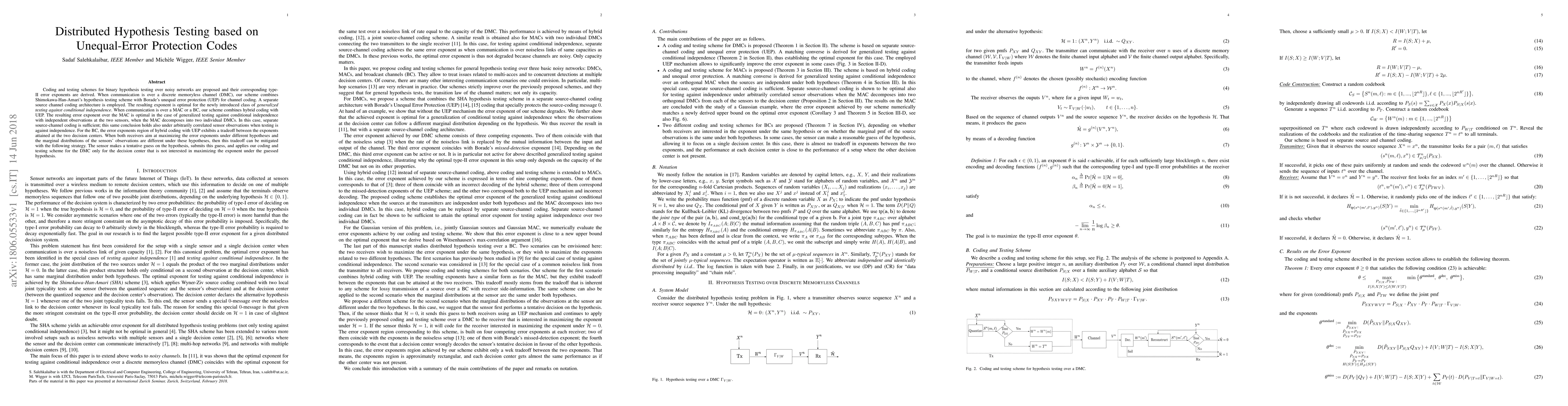 Coding and testing schemes for binary hypothesis testing over noisy networks are proposed and their corresponding type-II error exponents are derived. When communication is over a discrete memoryless channel (DMC), our scheme combines Shimokawa-Han-Amari's hypothesis testing scheme with Borade's unequal error protection (UEP) for channel coding. A separate source channel coding architecture is employed. The resulting exponent is optimal for the newly introduced class of \emph{generalized testing against conditional independence}. When communication is over a MAC or a BC, our scheme combines hybrid coding with UEP. The resulting error exponent over the MAC is optimal in the case of generalized testing against conditional independence with independent observations at the two sensors, when the MAC decomposes into two individual DMCs. In this case, separate source-channel coding is sufficient; this same conclusion holds also under arbitrarily correlated sensor observations when testing is against independence. For the BC, the error exponents region of hybrid coding with UEP exhibits a tradeoff between the exponents attained at the two decision centers. When both receivers aim at maximizing the error exponents under different hypotheses and the marginal distributions of the sensors' observations are different under these hypotheses, then this tradeoff can be mitigated with the following strategy. The sensor makes a tentative guess on the hypothesis, submits this guess, and applies our coding and testing scheme for the DMC only for the decision center that is not interested in maximizing the exponent under the guessed hypothesis.