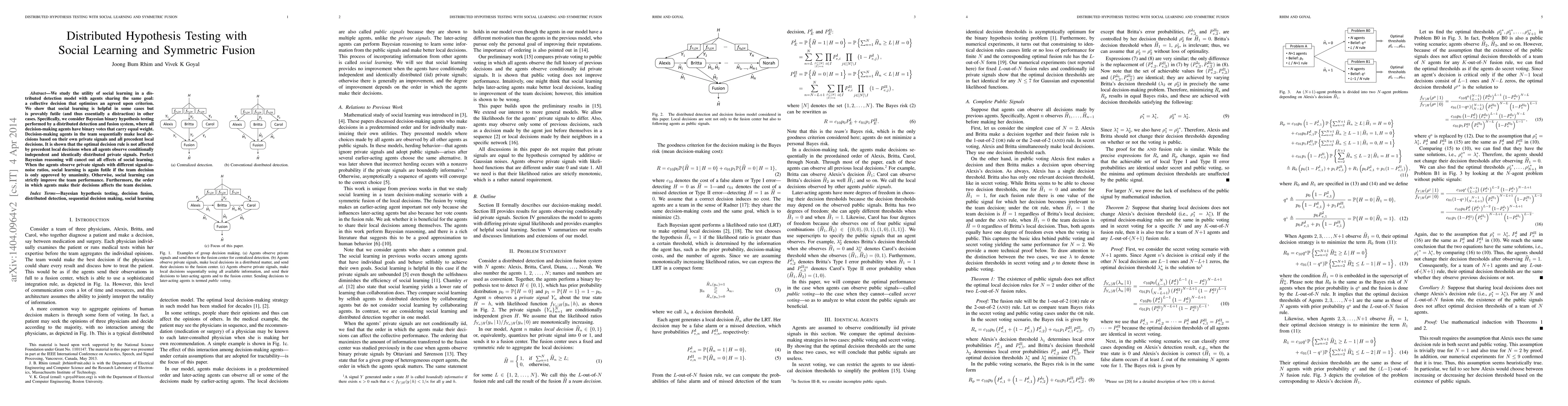 We study the utility of social learning in a distributed detection model with agents sharing the same goal: a collective decision that optimizes an agreed upon criterion. We show that social learning is helpful in some cases but is provably futile (and thus essentially a distraction) in other cases. Specifically, we consider Bayesian binary hypothesis testing performed by a distributed detection and fusion system, where all decision-making agents have binary votes that carry equal weight. Decision-making agents in the team sequentially make local decisions based on their own private signals and all precedent local decisions. It is shown that the optimal decision rule is not affected by precedent local decisions when all agents observe conditionally independent and identically distributed private signals. Perfect Bayesian reasoning will cancel out all effects of social learning. When the agents observe private signals with different signal-to-noise ratios, social learning is again futile if the team decision is only approved by unanimity. Otherwise, social learning can strictly improve the team performance. Furthermore, the order in which agents make their decisions affects the team decision.