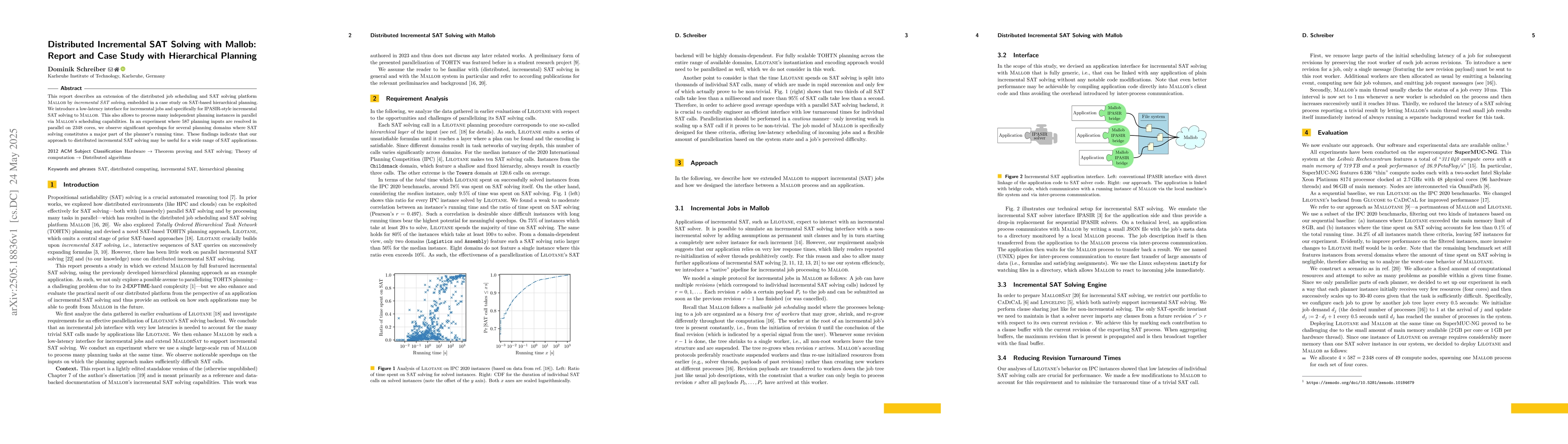 The research extends Mallob, a distributed job scheduling and SAT solving platform, by incorporating incremental SAT solving, demonstrated through a case study on SAT-based hierarchical planning. It introduces a low-latency interface for incremental jobs, particularly for IPASIR-style incremental SAT solving, enabling parallel processing of numerous independent planning instances via Mallob's scheduling capabilities.
