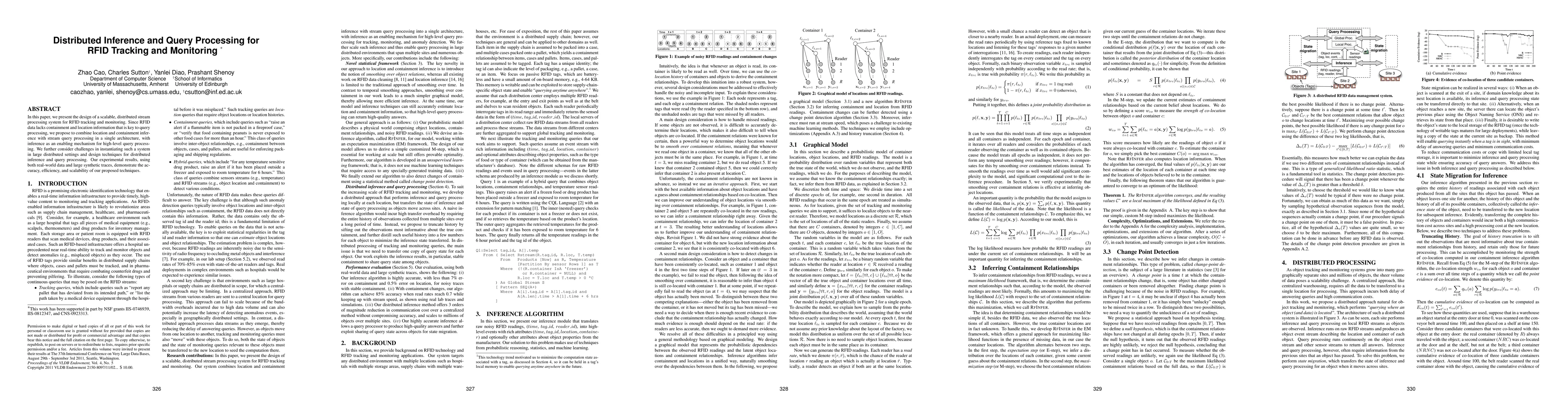 This paper designs a scalable distributed system for RFID tracking and monitoring, integrating location and containment inference with stream query processing to enhance high-level query capabilities. Experimental results show the accuracy, efficiency, and scalability of the proposed techniques.