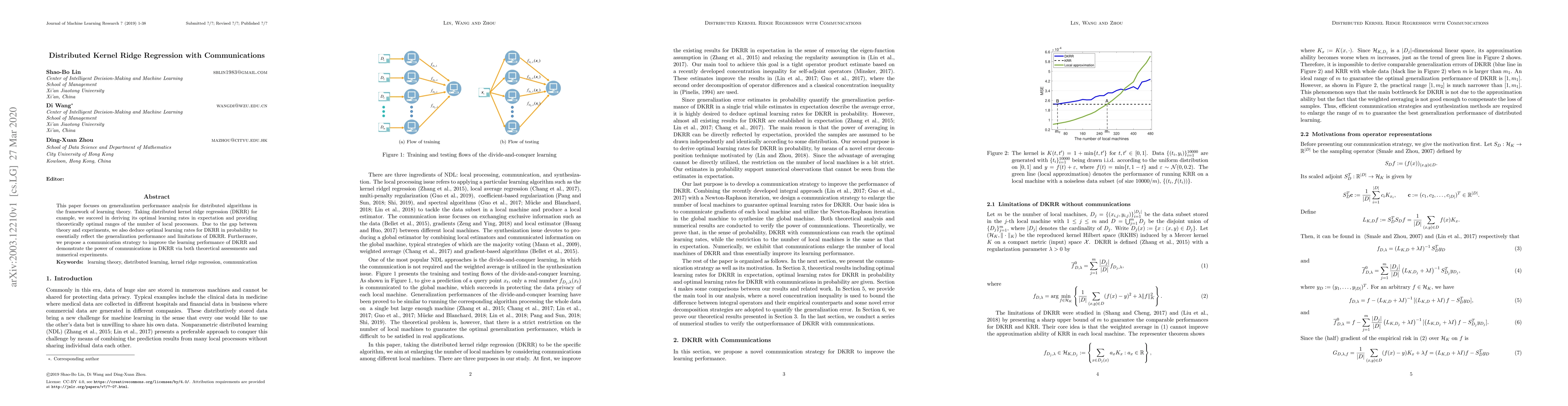 This paper analyzes the generalization performance of distributed kernel ridge regression (DKRR), deriving optimal learning rates and determining the ideal number of local processors. It also proposes a communication strategy to enhance DKRR's performance, supported by both theoretical and experimental validation.
