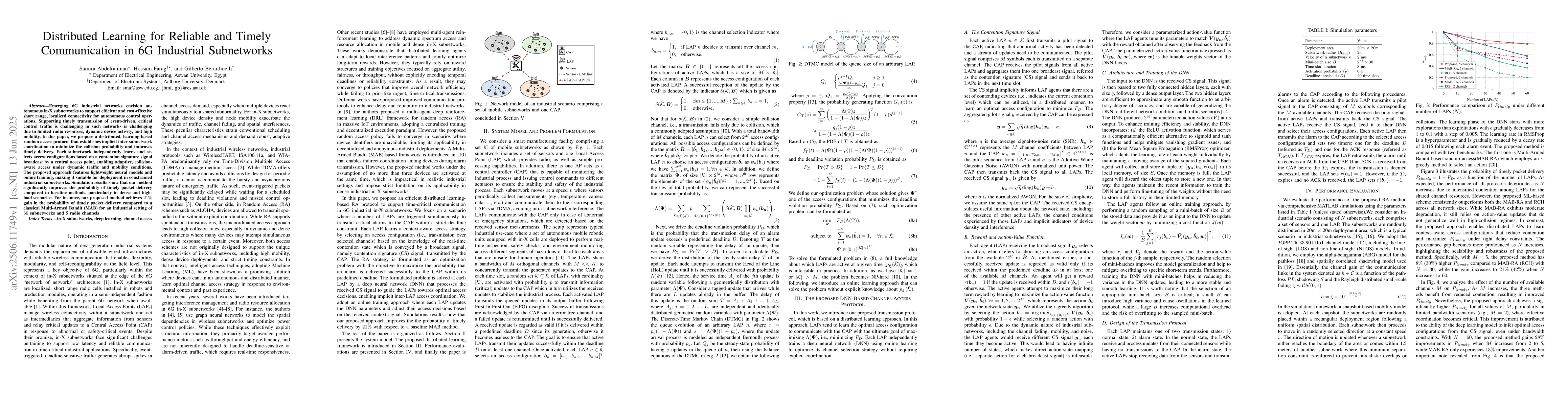 This paper introduces a distributed, learning-based protocol for reliable, timely communication in 6G industrial subnetworks. It uses lightweight neural models and online training, enabling subnetworks to adapt to dynamic conditions, significantly improving timely packet delivery by up to 21% compared to classical methods in high-load scenarios.