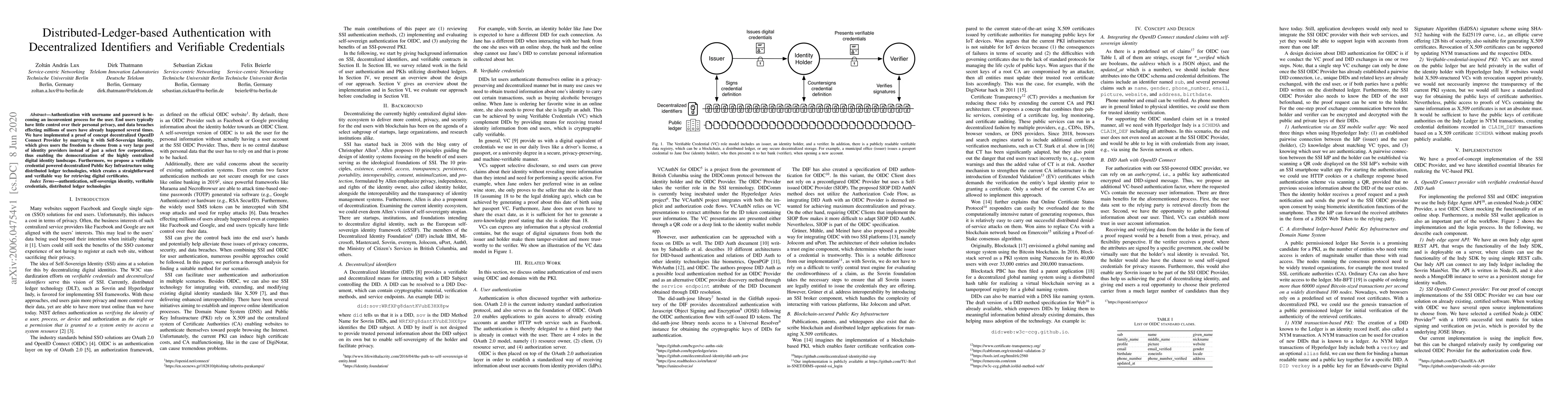 Authentication with username and password is becoming an inconvenient process for the user. End users typically have little control over their personal privacy, and data breaches effecting millions of users have already happened several times. We have implemented a proof of concept decentralized OpenID Connect Provider by marrying it with Self-Sovereign Identity, which gives users the freedom to choose from a very large pool of identity providers instead of just a select few corporations, thus enabling the democratization of the highly centralized digital identity landscape. Furthermore, we propose a verifiable credential powered decentralized Public Key Infrastructure using distributed ledger technologies, which creates a straightforward and verifiable way for retrieving digital certificates.