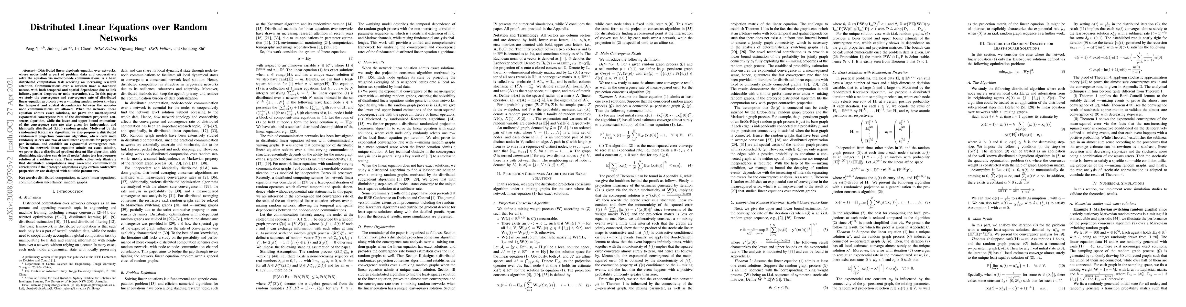Researchers developed new algorithms for solving linear equations on networks with random connections, showing that distributed computations can overcome communication challenges.