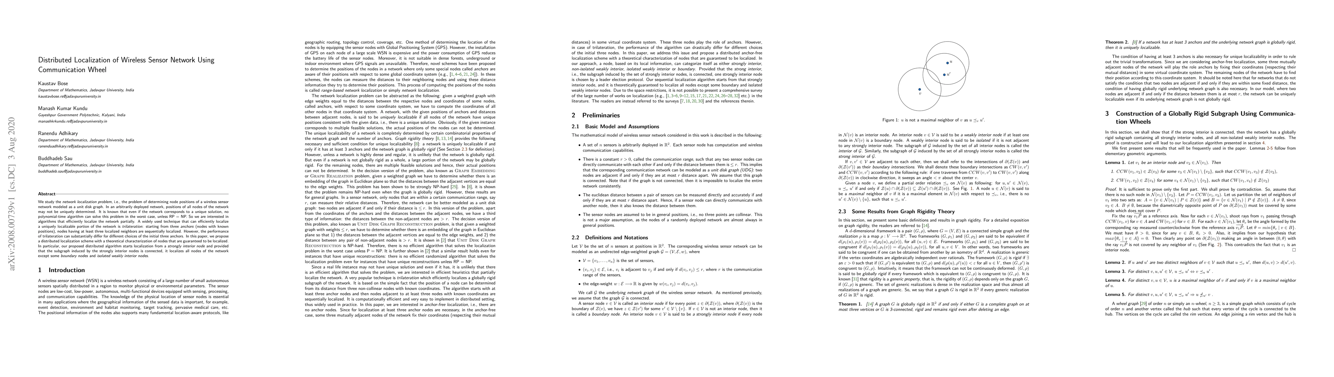 This research paper proposes a distributed localization scheme for wireless sensor networks that can efficiently localize most nodes except boundary ones, using a theoretical characterization of strongly interior nodes.
