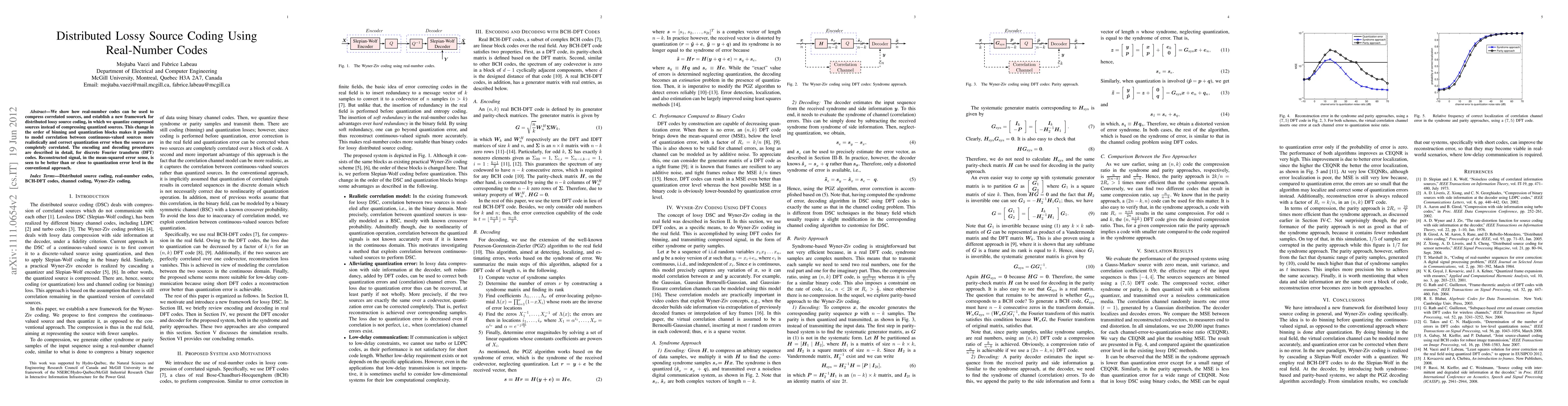 This paper introduces a new framework for lossy distributed source coding using real-number codes, which quantizes compressed sources instead of compressing quantized ones, leading to more realistic modeling of correlated continuous-valued sources and improved mean squared error reconstruction compared to conventional methods. The encoding and decoding procedures are exemplified using discrete Fourier transform codes.