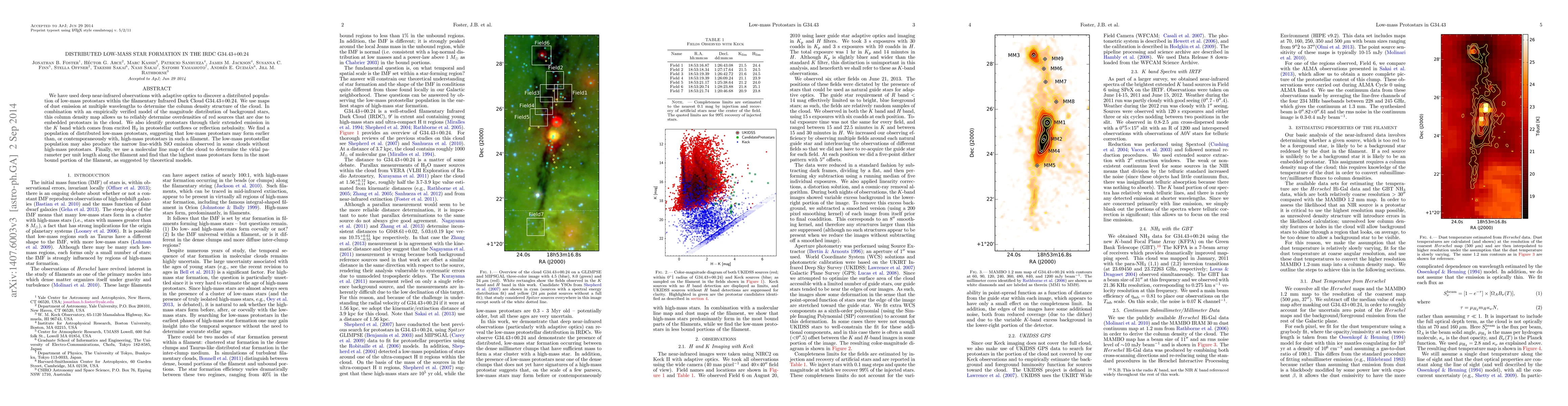 This paper reports the discovery of a distributed population of low-mass protostars within the filamentary Infrared Dark Cloud G34.43+00.24 using deep near-infrared observations. The study suggests that low-mass protostars may form earlier or concurrently with high-mass protostars, potentially influencing the cloud's dynamics.