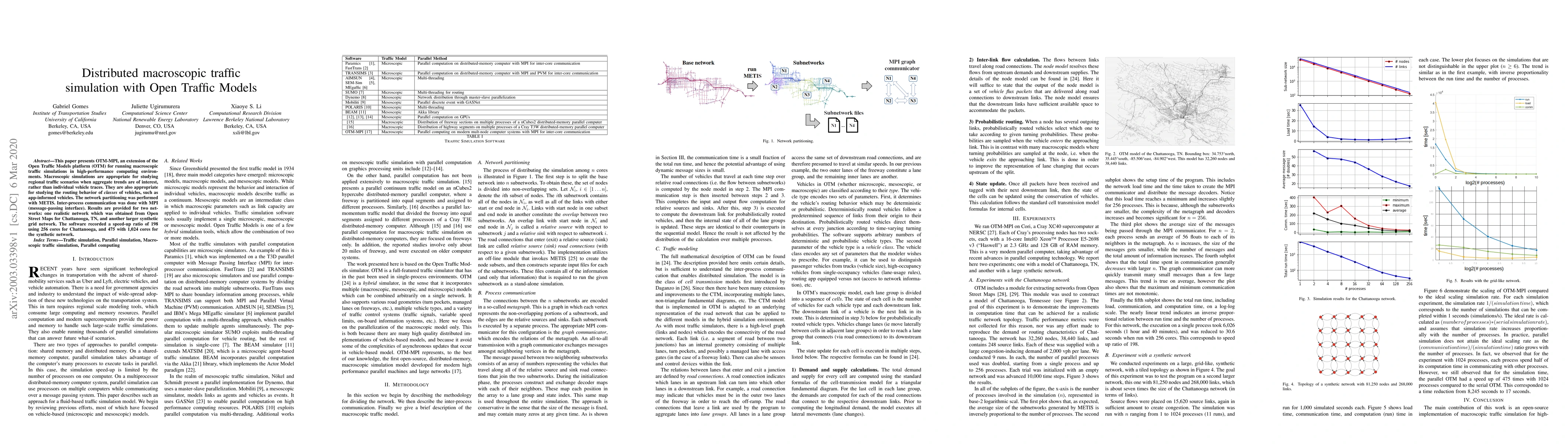 This paper presents OTM-MPI, an extension of the Open Traffic Models platform (OTM) for running macroscopic traffic simulations in high-performance computing environments. Macroscopic simulations are appropriate for studying regional traffic scenarios when aggregate trends are of interest, rather than individual vehicle traces. They are also appropriate for studying the routing behavior of classes of vehicles, such as app-informed vehicles. The network partitioning was performed with METIS. Inter-process communication was done with MPI (message-passing interface). Results are provided for two networks: one realistic network which was obtained from Open Street Maps for Chattanooga, TN, and another larger synthetic grid network. The software recorded a speed-up ratio of 198 using 256 cores for Chattanooga, and 475 with 1,024 cores for the synthetic network.