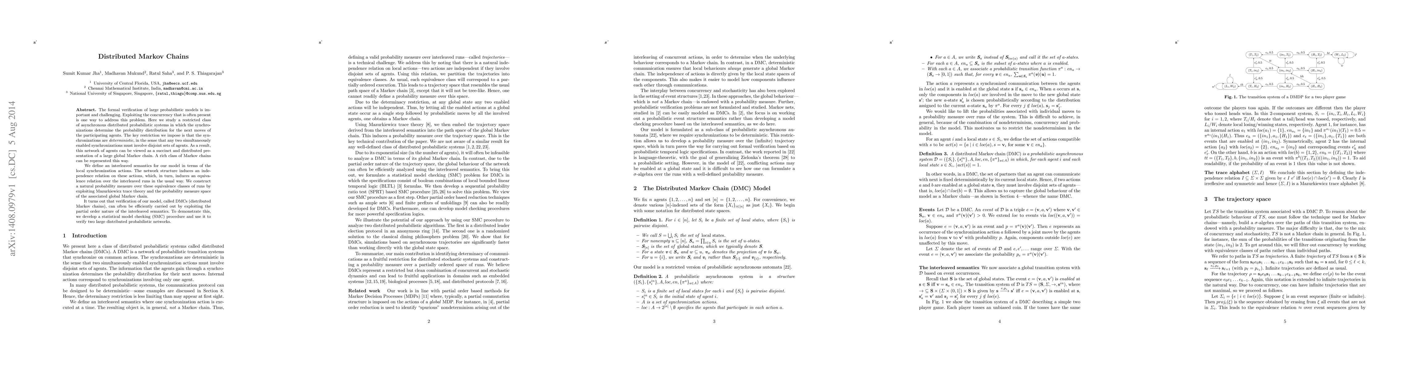 This paper introduces a new model for verifying large probabilistic systems, leveraging concurrency and deterministic synchronizations to efficiently verify distributed Markov chains.