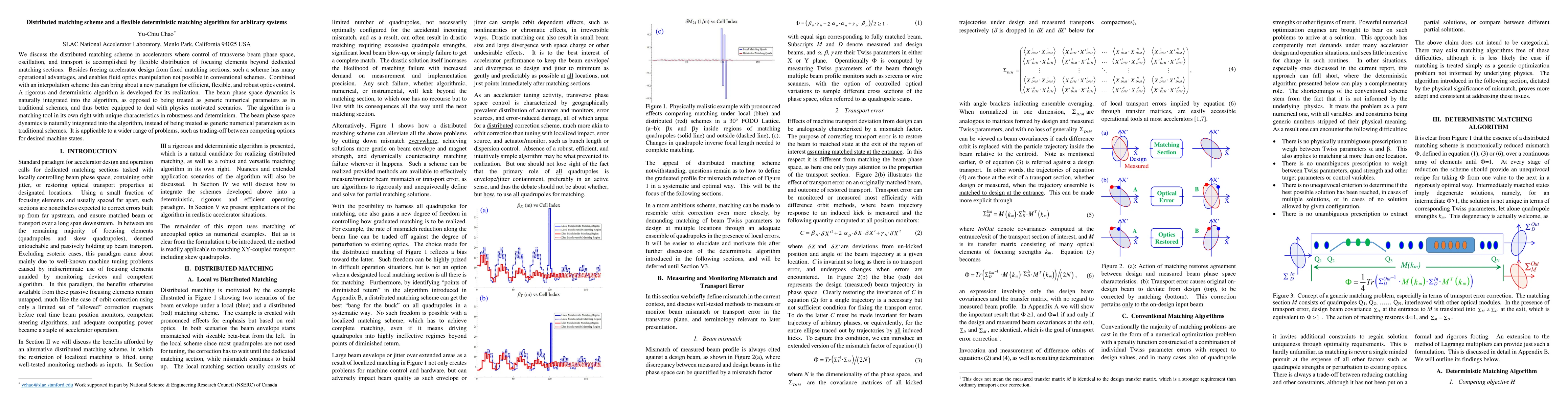 We discuss the distributed matching scheme in accelerators where control of transverse beam phase space, oscillation, and transport is accomplished by flexible distribution of focusing elements beyond dedicated matching sections. Besides freeing accelerator design from fixed matching sections, such a scheme has many operational advantages, and enables fluid optics manipulation not possible in conventional schemes. Combined with an interpolation scheme this can bring about a new paradigm for efficient, flexible, and robust optics control. A rigorous and deterministic algorithm is developed for its realization. The algorithm is a matching tool in its own right with unique characteristics in robustness and determinism. The beam phase space dynamics is naturally integrated into the algorithm, instead of being treated as generic numerical parameters as in traditional schemes. It is applicable to a wider range of problems, such as trading-off between competing options for desired machine states.
