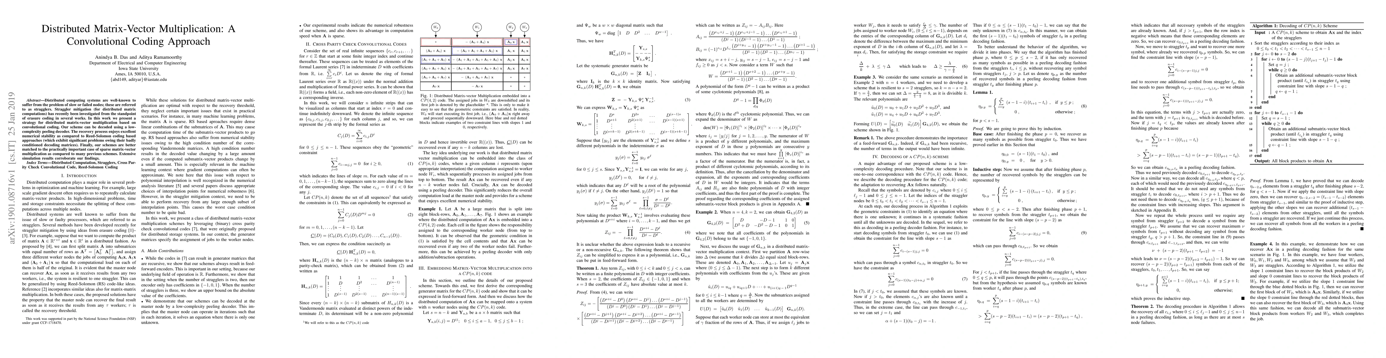 This paper proposes a convolutional coding approach for distributed matrix-vector multiplication, addressing straggler mitigation in distributed systems. It utilizes a low-complexity peeling decoder for decoding, offering better numerical stability and suitability for sparse matrix computations compared to Reed-Solomon coding.