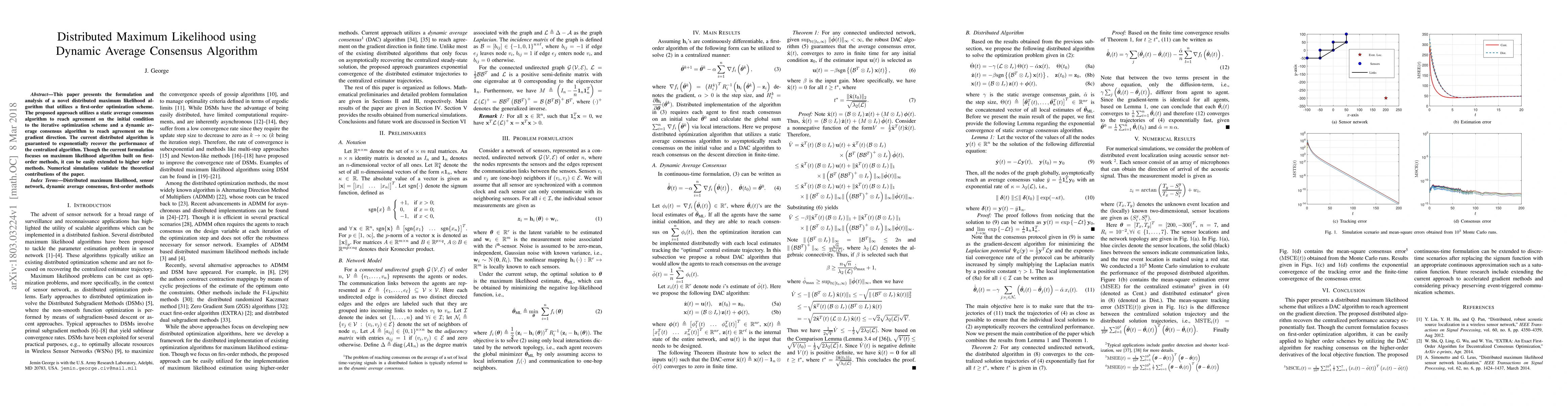The paper presents a distributed maximum likelihood algorithm using dynamic average consensus, combining a static average consensus for initial condition agreement with a dynamic average consensus for gradient direction agreement, ensuring exponential recovery of centralized algorithm performance.