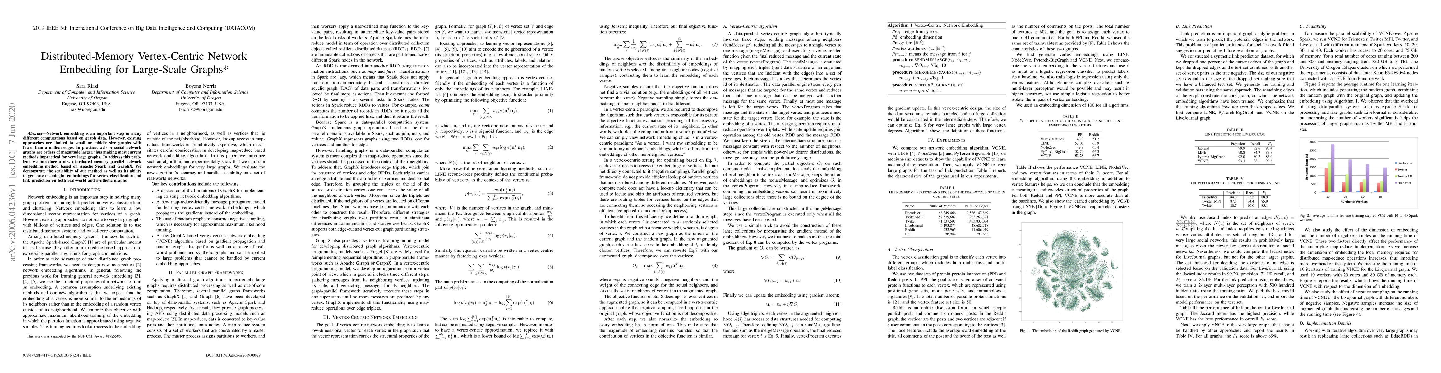 This paper introduces a distributed-memory parallel network embedding method using Apache Spark and GraphX to handle large-scale graphs with millions of edges. The proposed method demonstrates scalability and effectiveness in generating meaningful embeddings for vertex classification and link prediction.