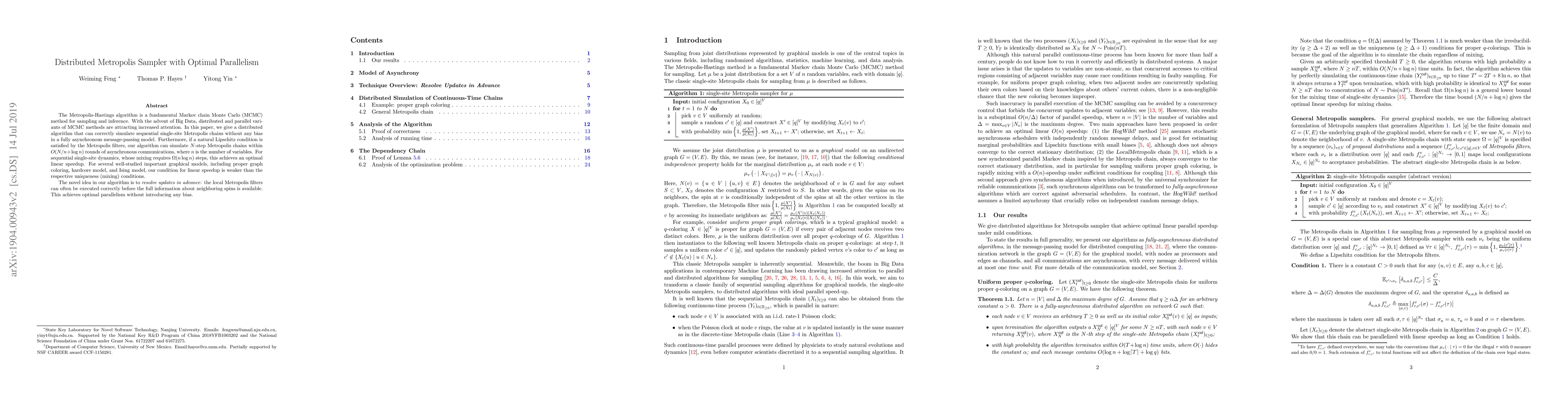 A new algorithm for distributed Metropolis-Hastings sampling achieves optimal parallelism without bias in fully asynchronous models, with potential applications in graphical models like proper graph coloring and the Ising model.