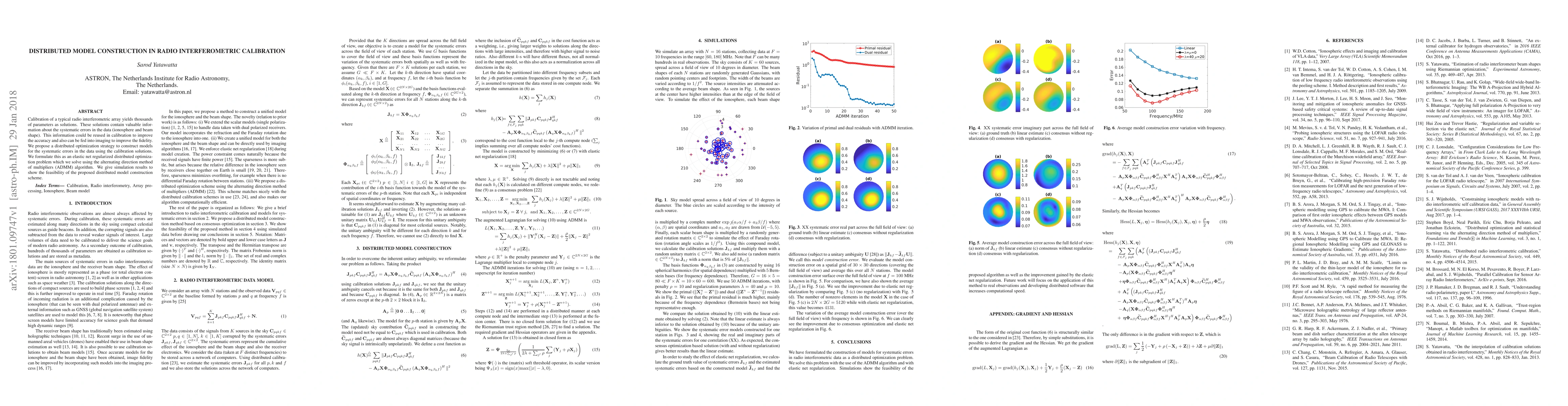 This paper proposes a distributed optimization strategy using the alternating direction method of multipliers (ADMM) to construct models for systematic errors in radio interferometric data, aiming to improve calibration accuracy and imaging fidelity. Simulation results demonstrate the feasibility of the proposed distributed model construction scheme.