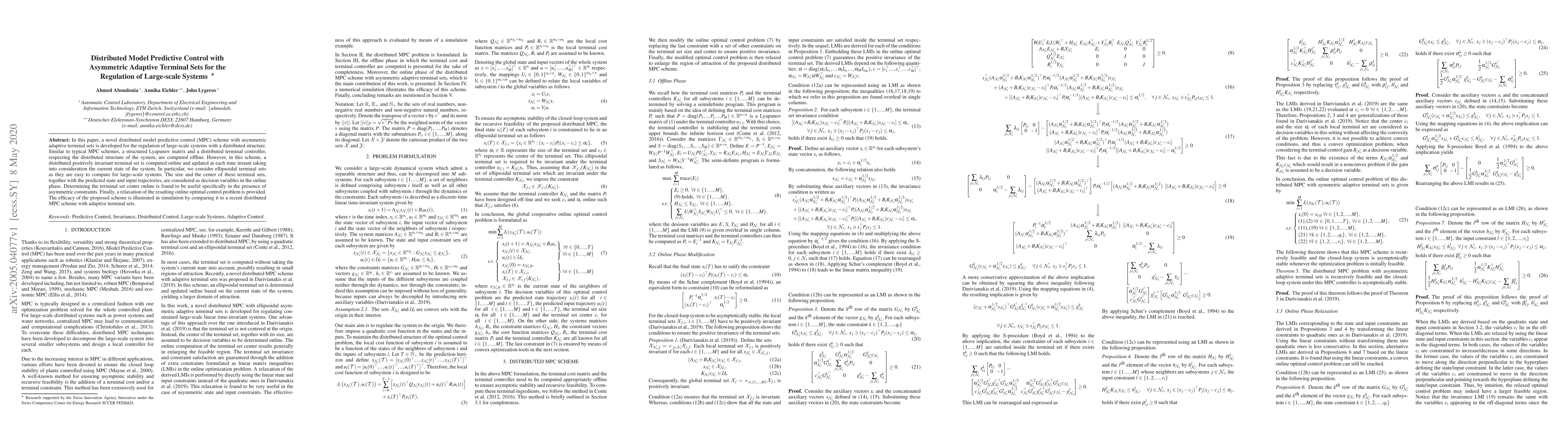 A novel distributed model predictive control scheme with adaptive terminal sets is developed for large-scale systems, improving regulation and handling asymmetric constraints.