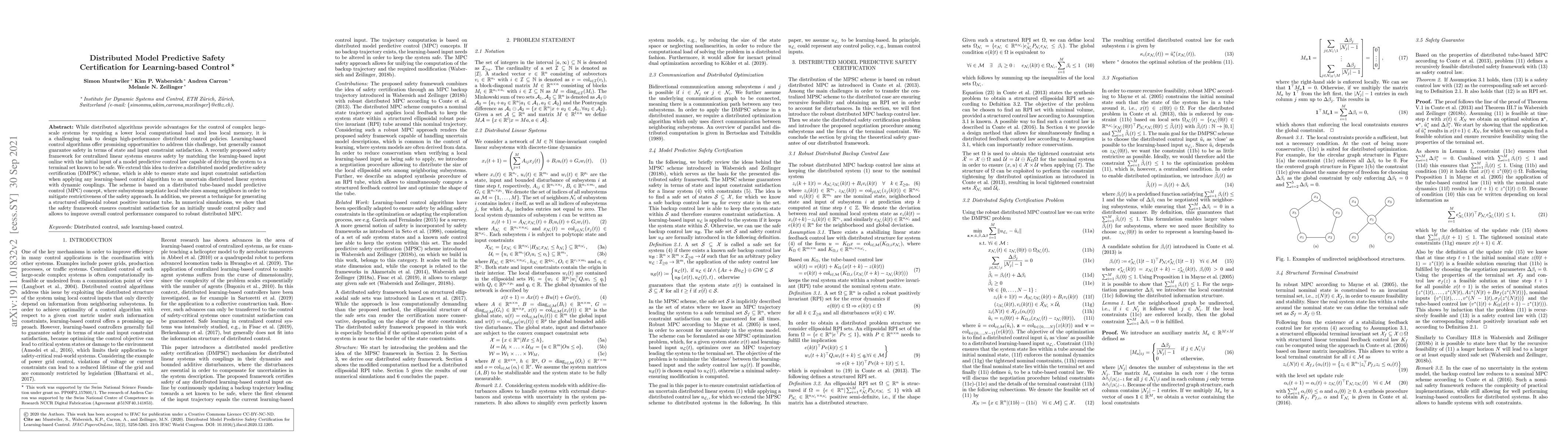 This paper proposes a Distributed Model Predictive Safety Certification (DMPSC) scheme to ensure state and input constraint satisfaction for learning-based control in distributed linear systems. The scheme leverages a distributed tube-based model predictive control concept and a structured ellipsoidal robust positive invariant tube to enhance safety and performance.