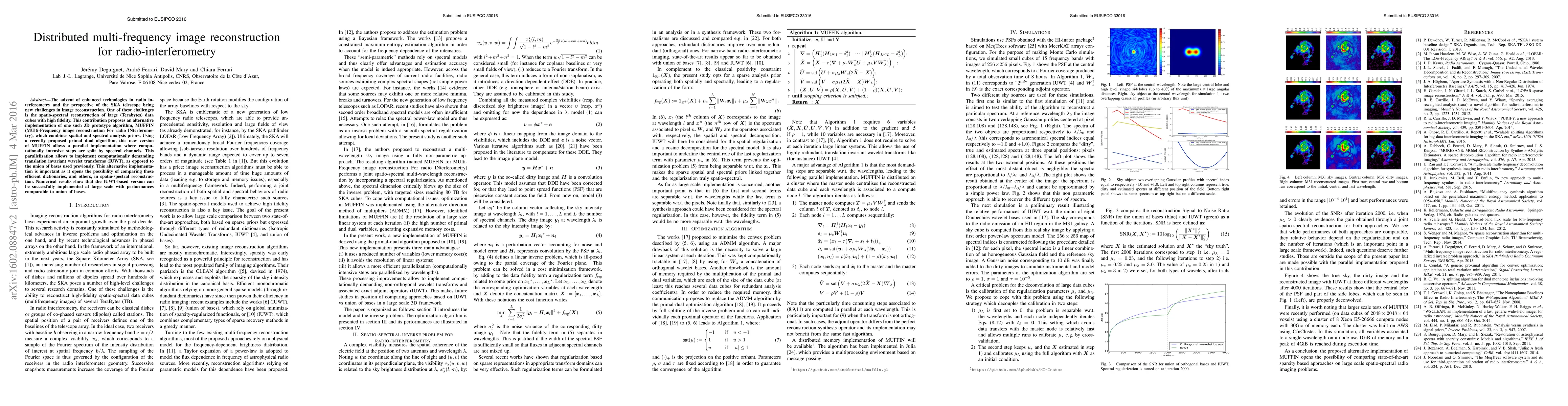 The advent of enhanced technologies in radio interferometry and the perspective of the SKA telescope bring new challenges in image reconstruction. One of these challenges is the spatio-spectral reconstruction of large (Terabytes) data cubes with high fidelity. This contribution proposes an alternative implementation of one such 3D prototype algorithm, MUFFIN (MUlti-Frequency image reconstruction For radio INterferometry), which combines spatial and spectral analysis priors. Using a recently proposed primal dual algorithm, this new version of MUFFIN allows a parallel implementation where computationally intensive steps are split by spectral channels. This parallelization allows to implement computationally demanding translation invariant wavelet transforms (IUWT), as opposed to the union of bases used previously. This alternative implementation is important as it opens the possibility of comparing these efficient dictionaries, and others, in spatio-spectral reconstruction. Numerical results show that the IUWT-based version can be successfully implemented at large scale with performances comparable to union of bases.