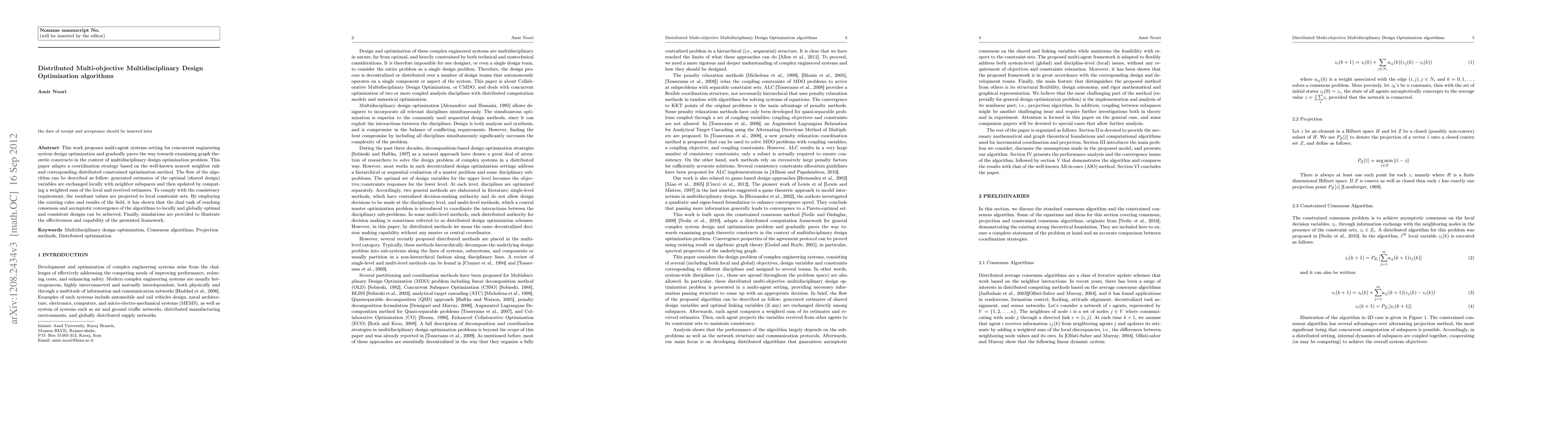 A distributed multidisciplinary design optimization algorithm was proposed and evaluated