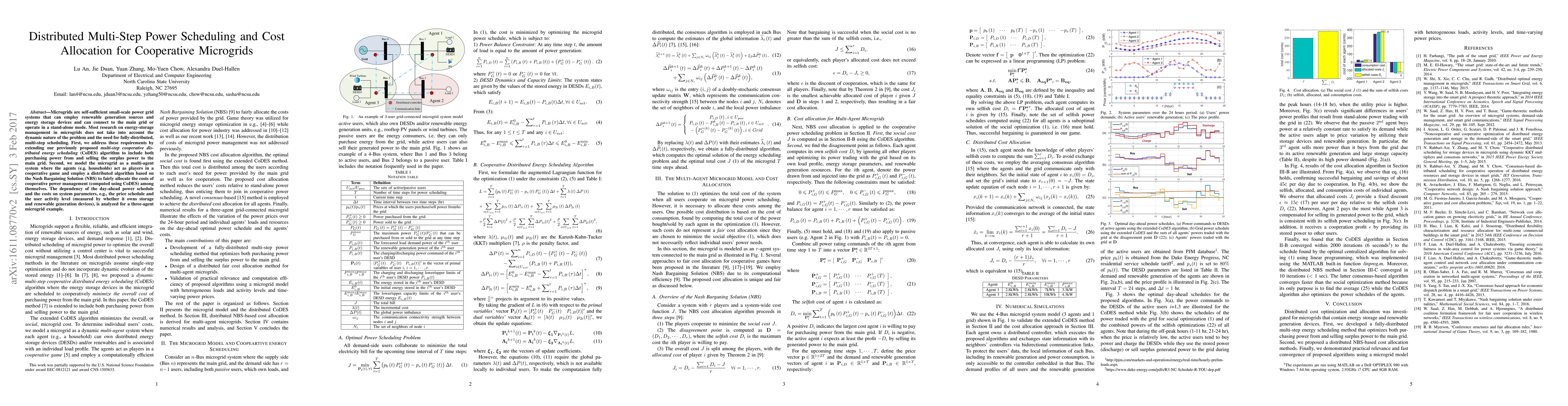 This paper extends a multi-step cooperative distributed energy scheduling algorithm to manage microgrids by considering both purchasing and selling power to the main grid. It also introduces a distributed cost allocation method based on the Nash Bargaining Solution for a multi-agent microgrid system, analyzing the impact of system parameters on the power schedule and costs.