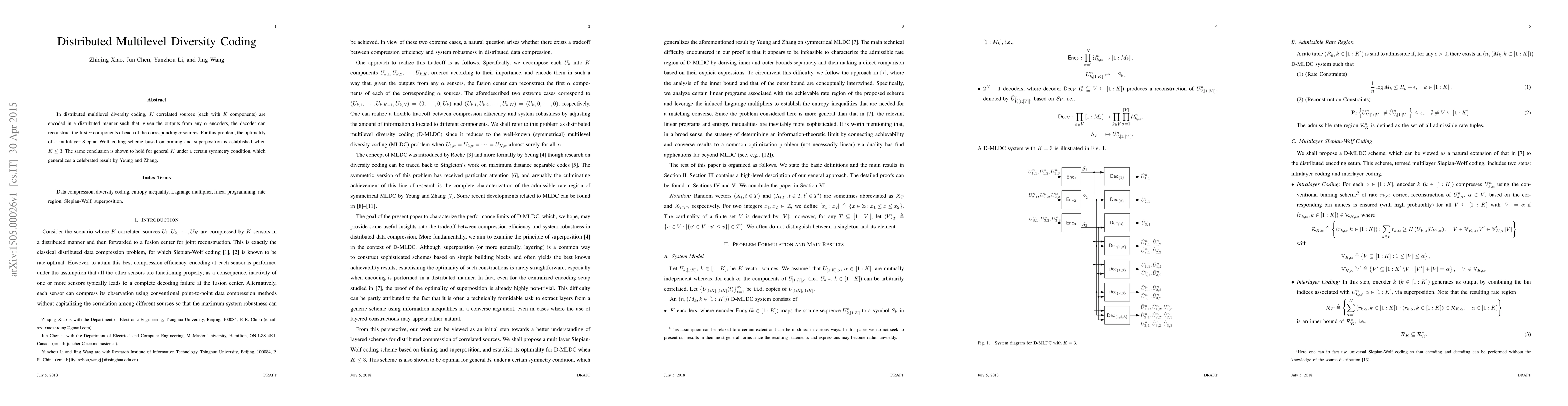 A research paper establishes that a multilayer Slepian-Wolf coding scheme is optimal for distributed multilevel diversity coding with K correlated sources when K is 3 or less, generalizing a previous result.