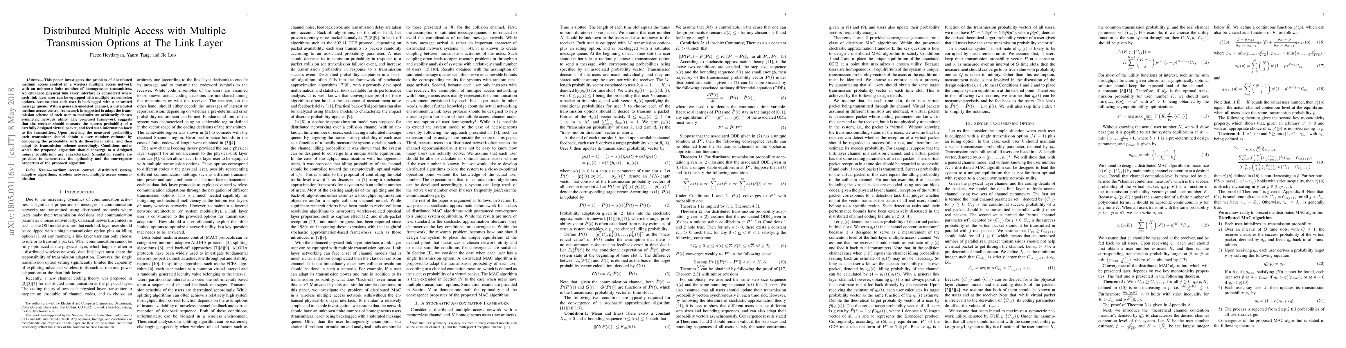 This paper investigates the problem of distributed medium access control in a wireless multiple access network with an unknown finite number of homogeneous transmitters. An enhanced physical link layer interface is considered where each link layer user can be equipped with multiple transmission options. Assume that each user is backlogged with a saturated message queue. With a generally-modeled channel, a distributed medium access control framework is suggested to adapt the transmission scheme of each user to maximize an arbitrarily chosen symmetric network utility. The proposed framework suggests that the receiver should measure the success probability of a carefully designed virtual packet, and feed such information back to the transmitters. Upon receiving the measured probability, each transmitter should obtain a user number estimate by comparing the probability with its theoretical value, and then adapt its transmission scheme accordingly. Conditions under which the proposed algorithm should converge to a designed unique equilibrium are characterized. Simulation results are provided to demonstrate the optimality and the convergence properties of the proposed algorithm.