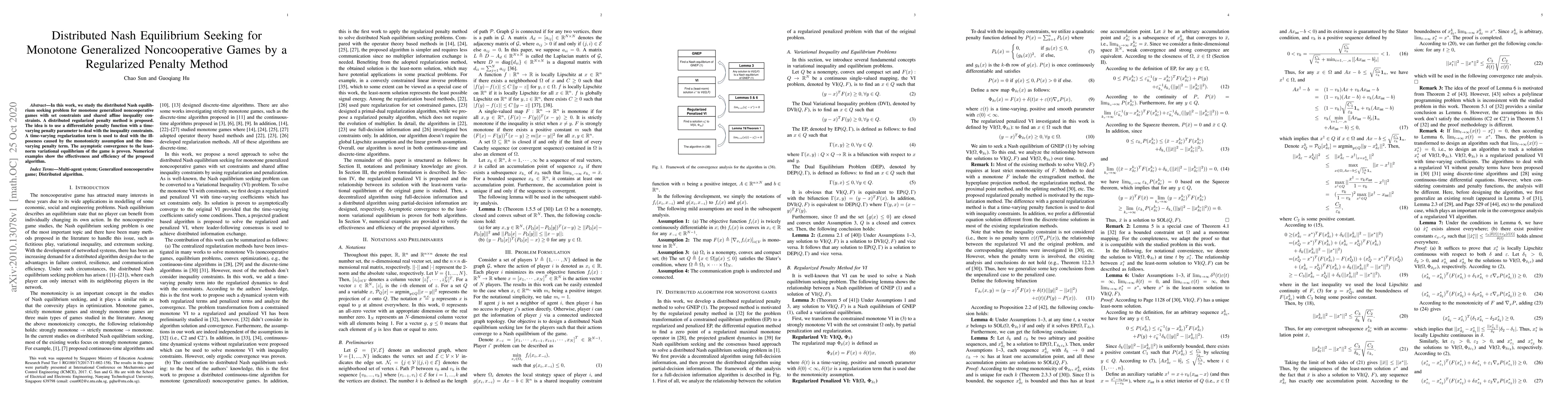 This research introduces a novel approach by combining a time-varying penalty method with a regularization term to address the challenges posed by monotonicity and inequality constraints in distributed Nash equilibrium seeking for generalized noncooperative games.