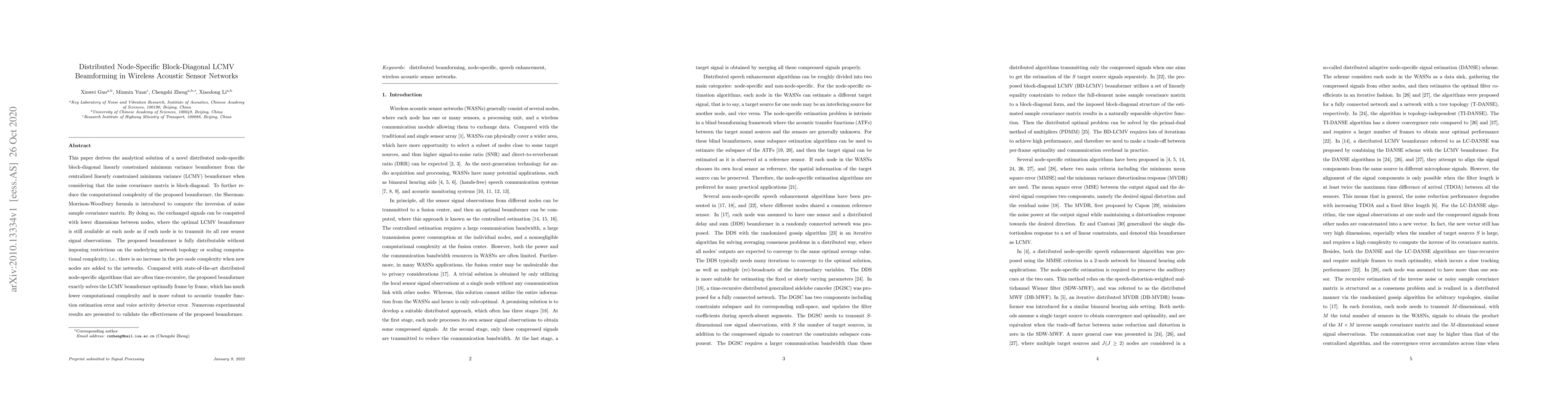This paper derives the analytical solution of a novel distributed node-specific block-diagonal linearly constrained minimum variance beamformer from the centralized linearly constrained minimum variance (LCMV) beamformer when considering that the noise covariance matrix is block-diagonal. To further reduce the computational complexity of the proposed beamformer, the ShermanMorrison-Woodbury formula is introduced to compute the inversion of noise sample covariance matrix. By doing so, the exchanged signals can be computed with lower dimensions between nodes, where the optimal LCMV beamformer is still available at each node as if each node is to transmit its all raw sensor signal observations. The proposed beamformer is fully distributable without imposing restrictions on the underlying network topology or scaling computational complexity, i.e., there is no increase in the per-node complexity when new nodes are added to the networks. Compared with state-of-the-art distributed node-specific algorithms that are often time-recursive, the proposed beamformer exactly solves the LCMV beamformer optimally frame by frame, which has much lower computational complexity and is more robust to acoustic transfer function estimation error and voice activity detector error. Numerous experimental results are presented to validate the effectiveness of the proposed beamformer.