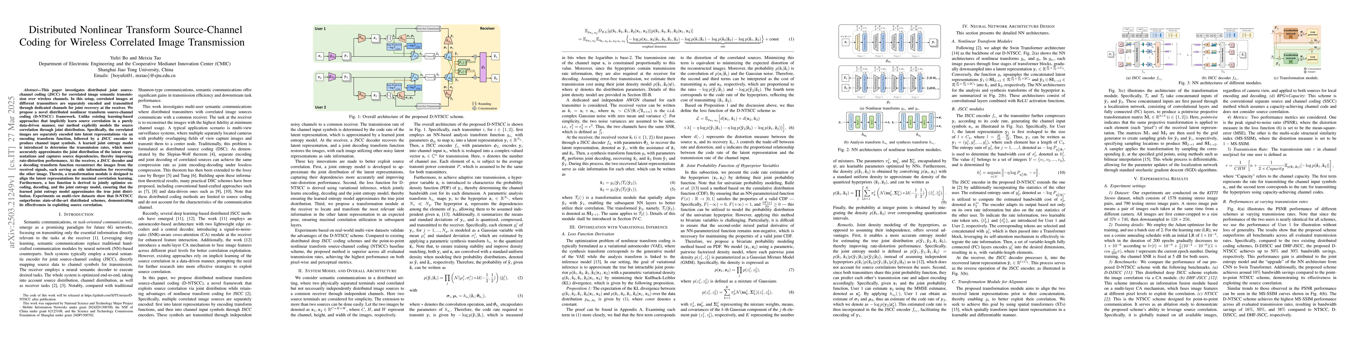 A new distributed nonlinear transform source-channel coding framework is proposed for correlated image transmission over wireless channels, outperforming state-of-the-art schemes in exploiting source correlation.