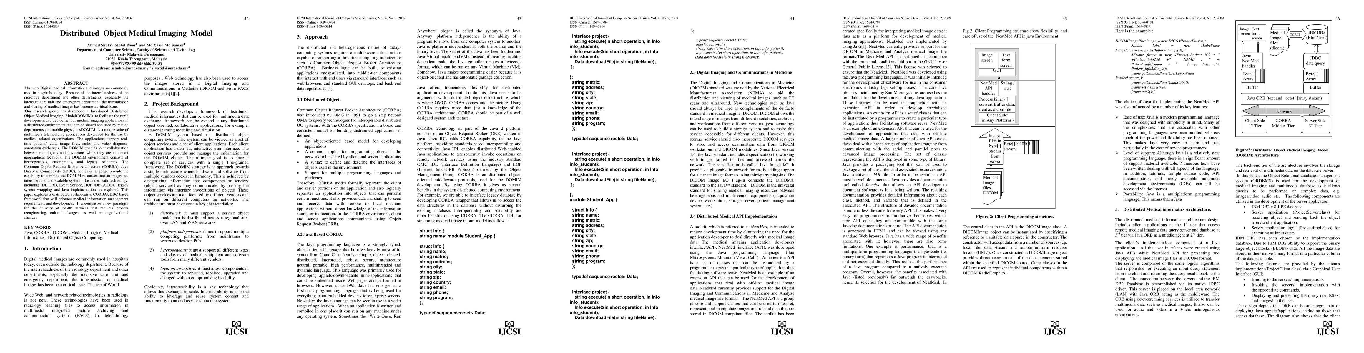 The paper presents a Java-based Distributed Object Medical Imaging Model (DOMIM) to facilitate the rapid development and deployment of medical imaging applications in a distributed environment, enabling real-time data and multimedia exchange for collaborative telemedicine across departments. The DOMIM framework integrates heterogeneous resources using CORBA, JDBC, and Java to support scalable, interoperable, and collaborative medical information management.