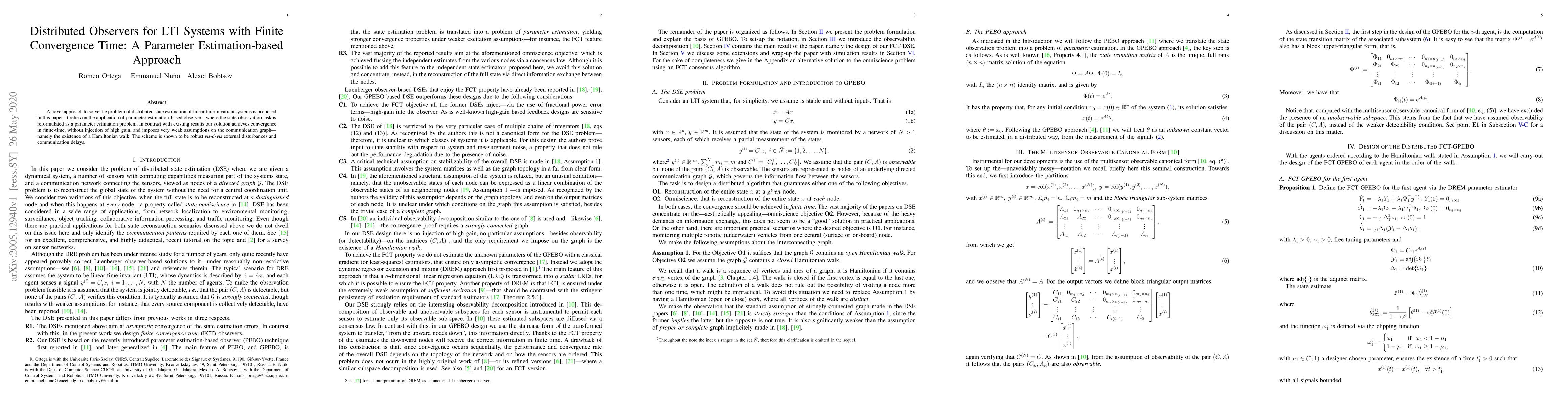 This paper proposes a novel parameter estimation-based approach for distributed state estimation of linear time-invariant systems, achieving finite convergence time without high gain injection and requiring minimal assumptions on the communication graph, specifically the existence of a Hamiltonian walk. The method is robust to external disturbances and communication delays.