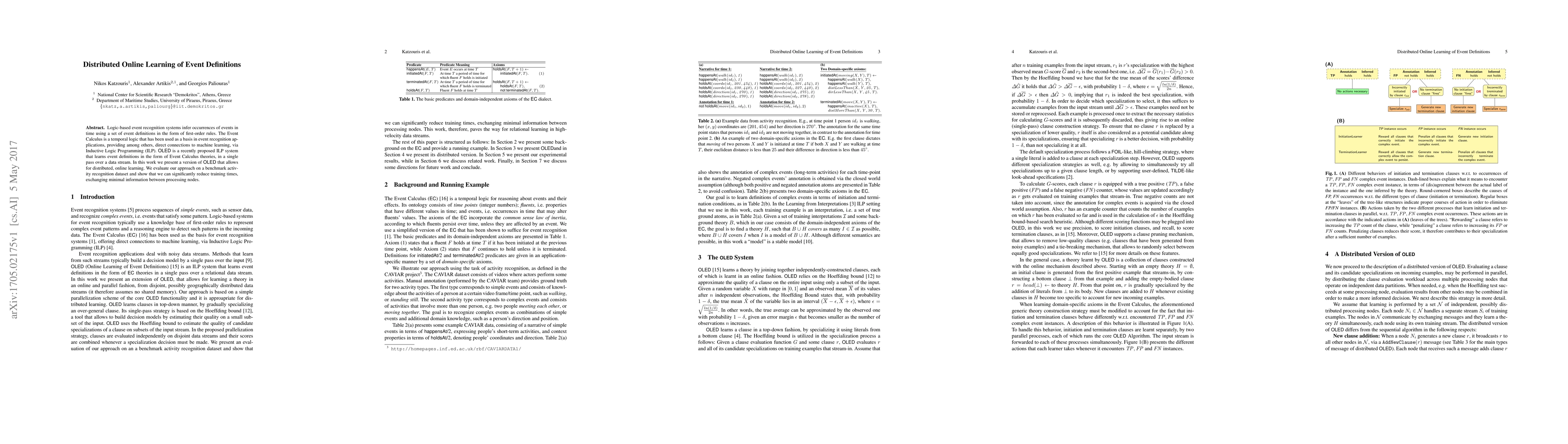 This paper introduces a distributed, online version of the OLED ILP system for learning event definitions in real time using Event Calculus theories, achieving significant reductions in training times with minimal communication between nodes. Evaluation on an activity recognition dataset confirms the effectiveness of the proposed approach.