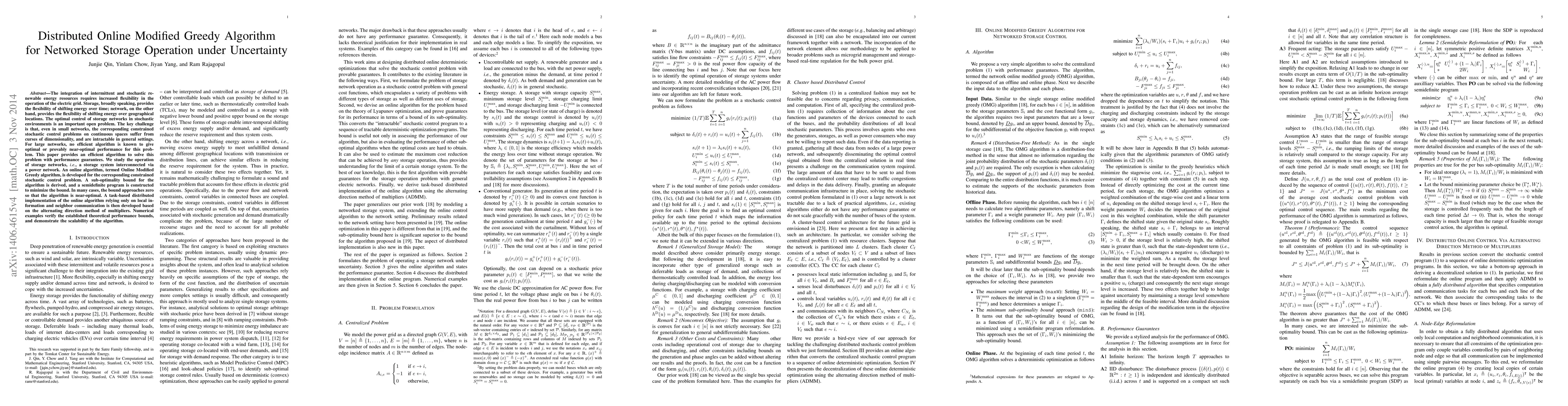 A new algorithm is proposed to optimize storage networks under uncertainty, providing near-optimal performance for large-scale problems and demonstrating scalability through a distributed implementation.