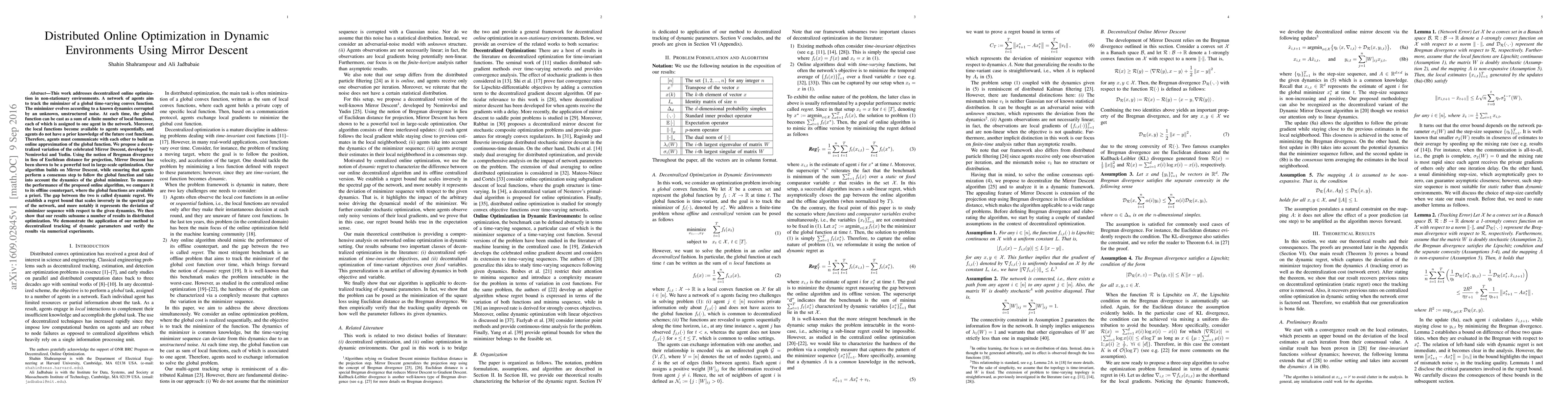 This paper proposes a decentralized online optimization algorithm based on a variation of Mirror Descent for a network of agents to track a time-varying global convex function. The algorithm ensures consensus among agents to adapt to the evolving function and its dynamics, establishing a regret bound that scales inversely with the network's spectral gap and demonstrating its effectiveness through numerical experiments.