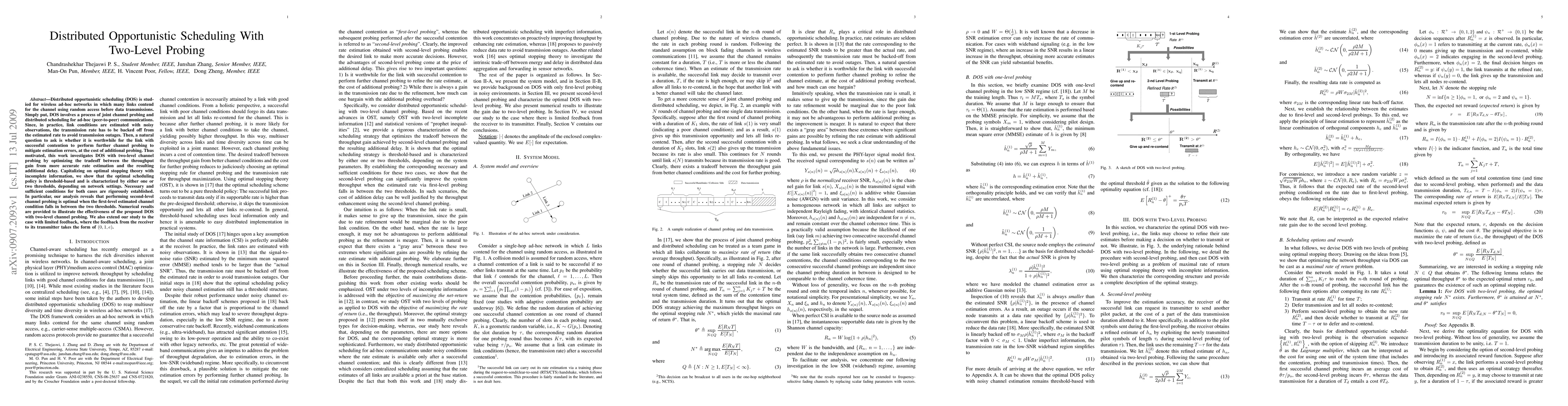 This paper studies distributed opportunistic scheduling (DOS) in wireless ad-hoc networks, focusing on optimizing throughput by employing two-level channel probing to improve rate estimation accuracy. The proposed optimal scheduling policy is threshold-based, balancing the benefits of more accurate rate estimation against additional probing delay, and is shown to be effective through numerical results.