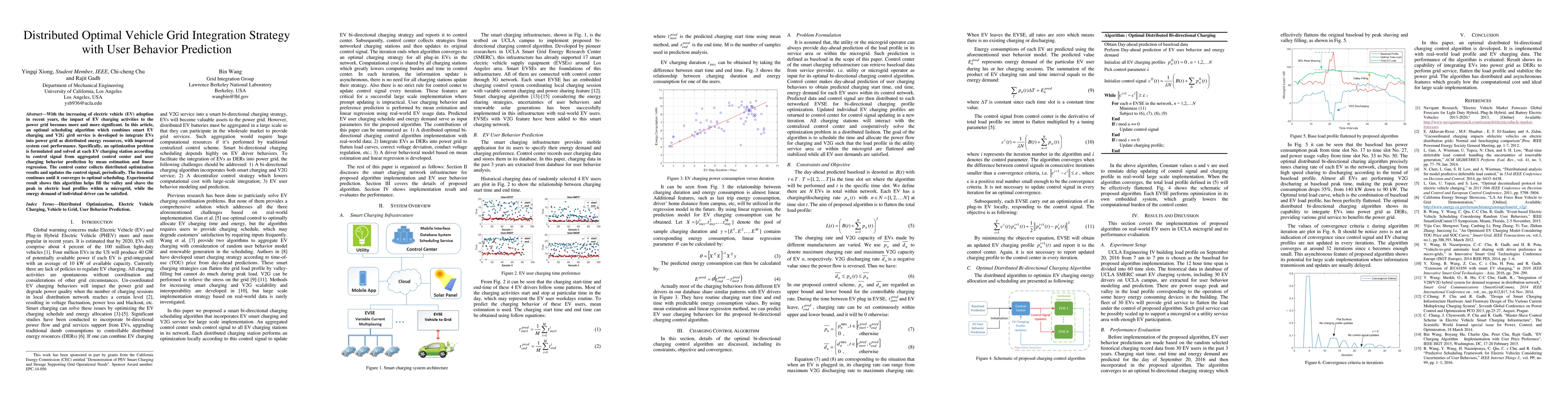 This paper proposes an optimal scheduling algorithm for integrating electric vehicles (EVs) into the power grid as distributed energy resources, combining smart charging and vehicle-to-grid (V2G) services. The algorithm optimizes EV charging based on user behavior predictions and control signals from a central control center, achieving cost-effective grid integration and improved load profiles.