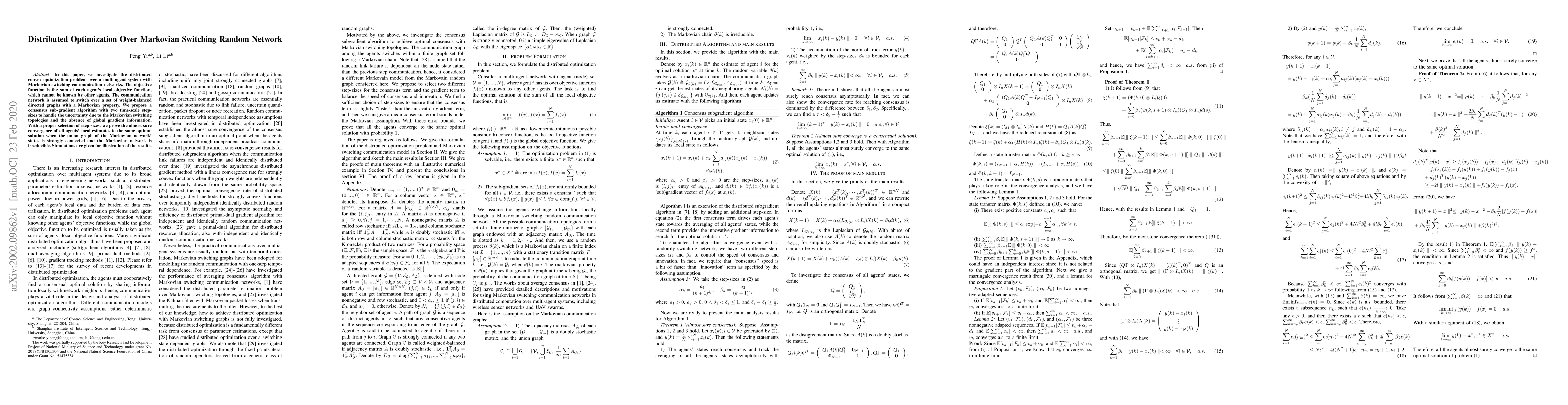 This paper proposes a consensus sub-gradient algorithm for distributed convex optimization in a multi-agent system with Markovian switching communication networks. The algorithm employs two time-scale step-sizes to address network topology uncertainty and convergence is proven under strong connectivity and irreducibility conditions.