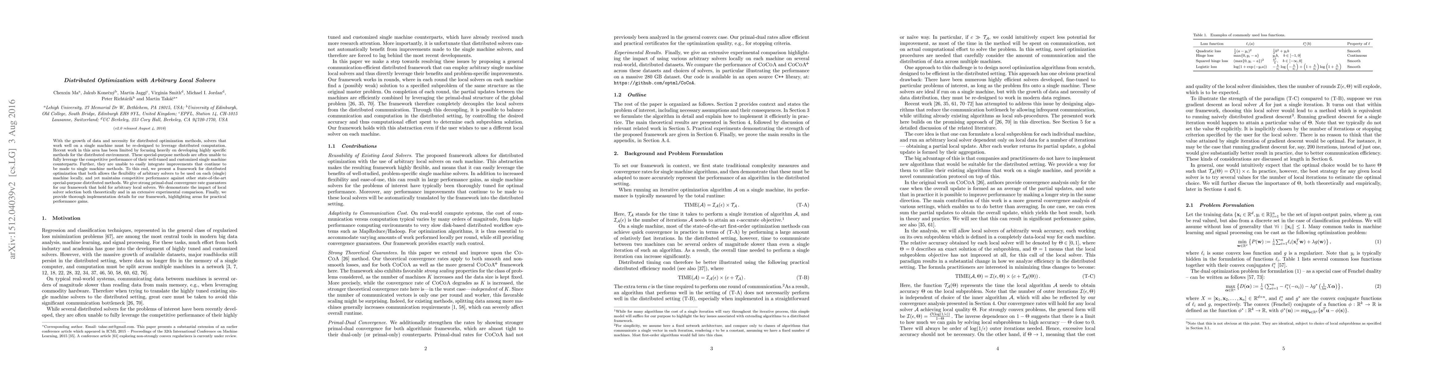 Researchers developed a framework for distributed optimization that allows flexible use of arbitrary local solvers while maintaining competitive performance. Their framework achieves strong primal-dual convergence rate guarantees.
