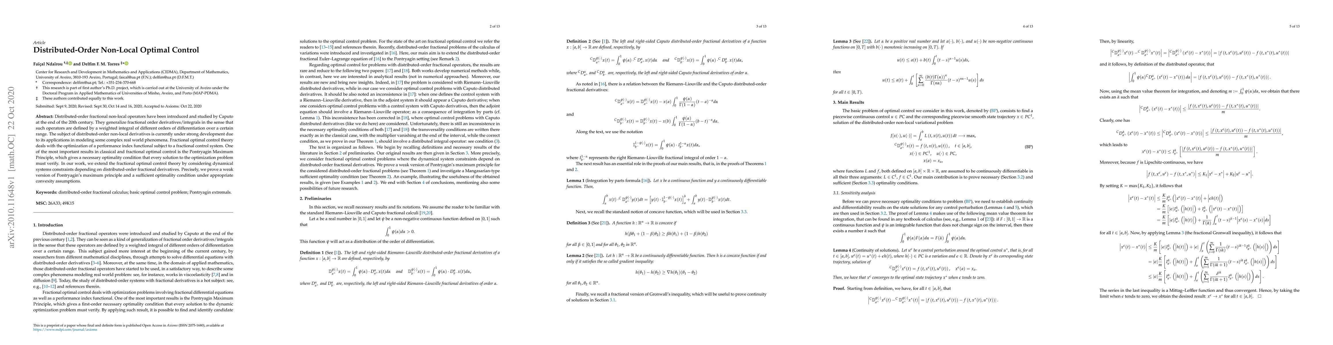 Distributed-order fractional non-local operators have been introduced and studied by Caputo at the end of the 20th century. They generalize fractional order derivatives/integrals in the sense that such operators are defined by a weighted integral of different orders of differentiation over a certain range. The subject of distributed-order non-local derivatives is currently under strong development due to its applications in modeling some complex real world phenomena. Fractional optimal control theory deals with the optimization of a performance index functional subject to a fractional control system. One of the most important results in classical and fractional optimal control is the Pontryagin Maximum Principle, which gives a necessary optimality condition that every solution to the optimization problem must verify. In our work, we extend the fractional optimal control theory by considering dynamical systems constraints depending on distributed-order fractional derivatives. Precisely, we prove a weak version of Pontryagin's maximum principle and a sufficient optimality condition under appropriate convexity assumptions.