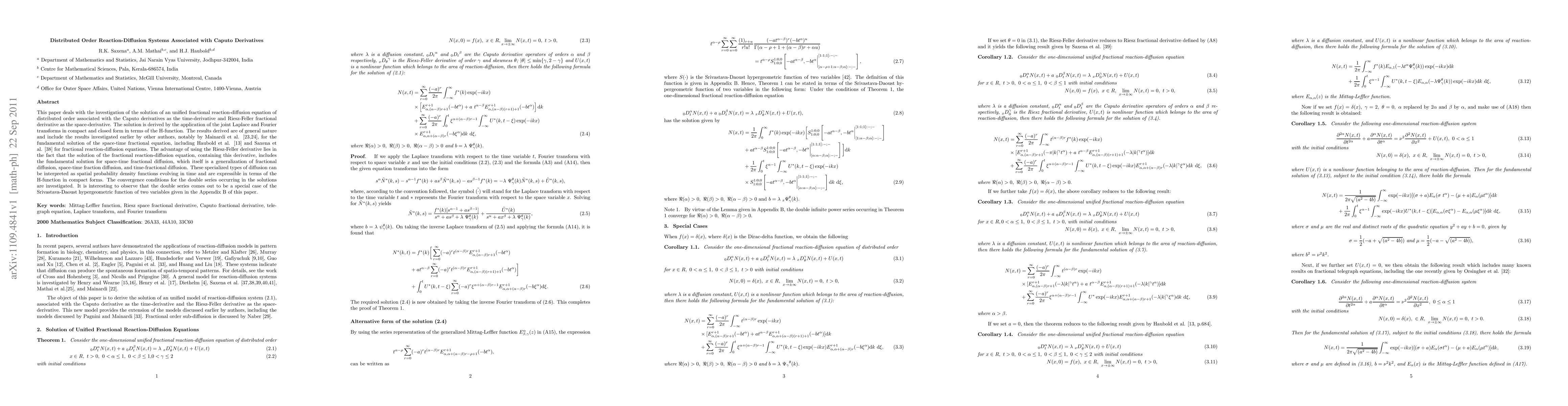 This paper investigates solutions to a unified fractional reaction-diffusion equation with distributed order, employing Caputo derivatives for time and Riesz-Feller derivatives for space. Solutions are derived using joint Laplace and Fourier transforms in closed form using H-functions, generalizing prior results by Mainardi et al. and others. The Riesz-Feller derivative's advantage is highlighted through its inclusion of generalized diffusion solutions expressible in compact H-function forms.