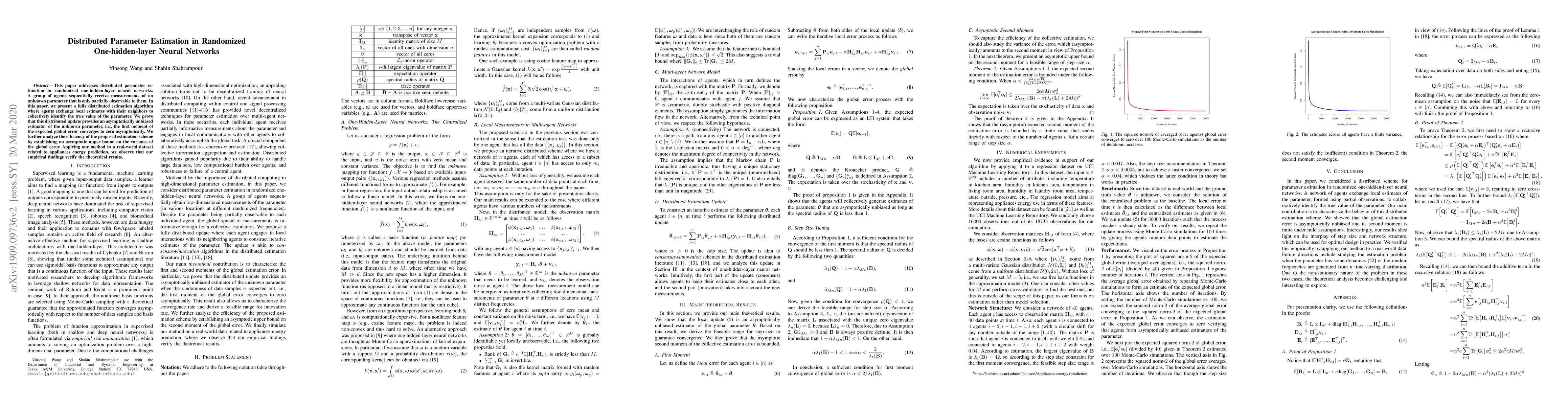 Researchers develop a distributed estimation algorithm for one-hidden-layer neural networks, showing it can efficiently estimate unknown parameters in a group of agents with limited local observability.