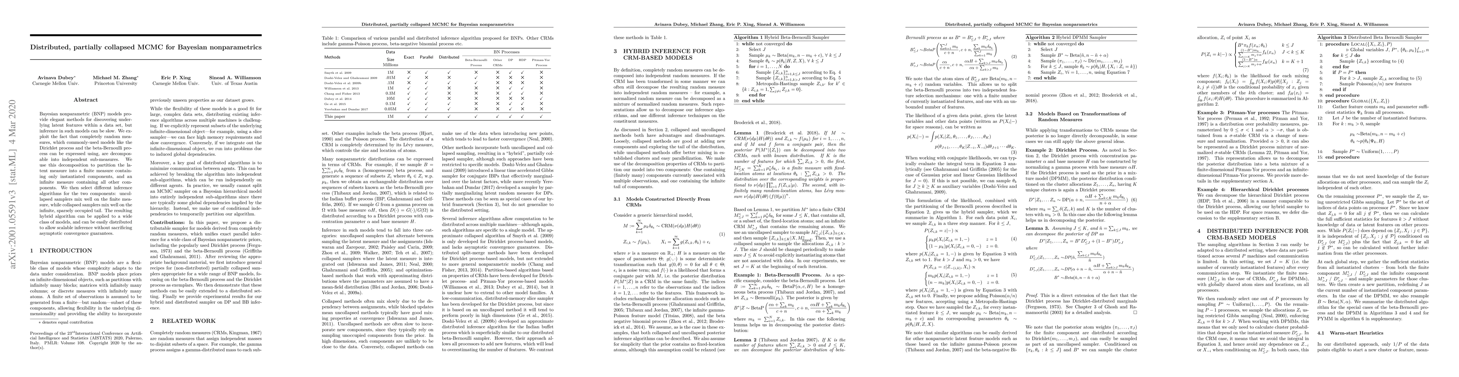 This research paper presents a new hybrid MCMC algorithm for Bayesian nonparametrics that combines the strengths of uncollapsed and collapsed samplers, allowing scalable inference while maintaining asymptotic convergence guarantees.