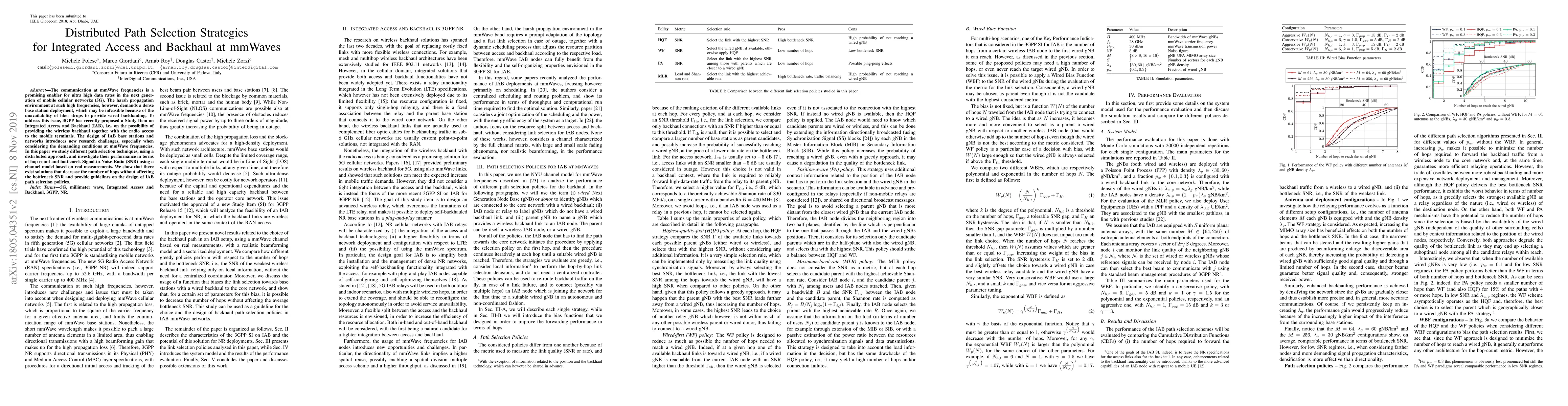 This paper explores distributed path selection strategies for Integrated Access and Backhaul (IAB) at mmWave frequencies, focusing on reducing hop count while maintaining bottleneck Signal-to-Noise-Ratio (SNR). It evaluates various techniques using a real-measurement-based channel model and provides insights for designing effective IAB path selection policies.