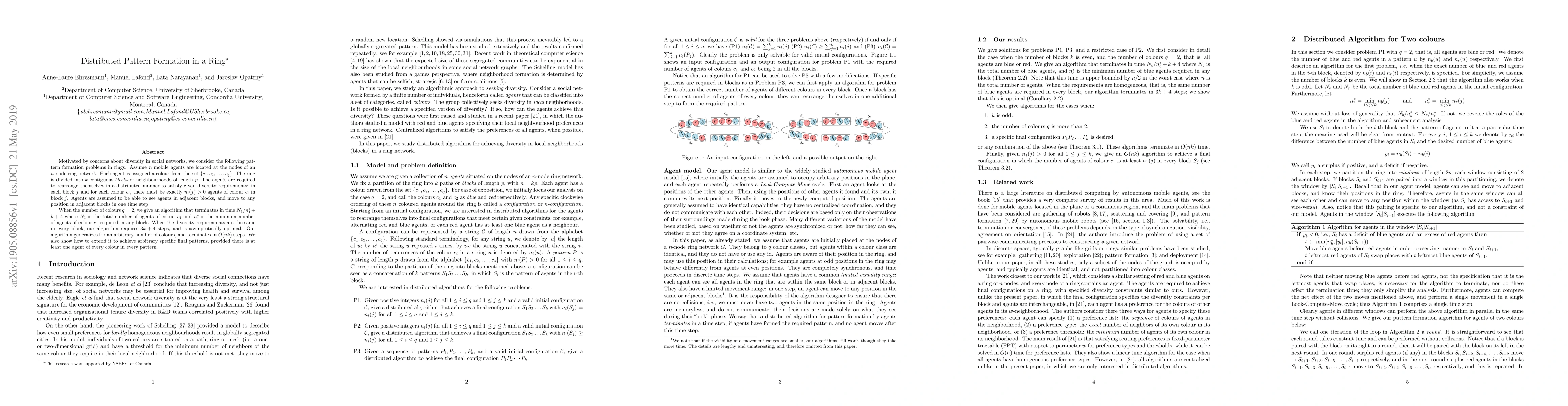 Motivated by concerns about diversity in social networks, we consider the following pattern formation problems in rings. Assume $n$ mobile agents are located at the nodes of an $n$-node ring network. Each agent is assigned a colour from the set $\{c_1, c_2, \ldots, c_q \}$. The ring is divided into $k$ contiguous {\em blocks} or neighbourhoods of length $p$. The agents are required to rearrange themselves in a distributed manner to satisfy given diversity requirements: in each block $j$ and for each colour $c_i$, there must be exactly $n_i(j) >0$ agents of colour $c_i$ in block $j$. Agents are assumed to be able to see agents in adjacent blocks, and move to any position in adjacent blocks in one time step. When the number of colours $q=2$, we give an algorithm that terminates in time $N_1/n^*_1 + k + 4$ where $N_1$ is the total number of agents of colour $c_1$ and $n^*_1$ is the minimum number of agents of colour $c_1$ required in any block. When the diversity requirements are the same in every block, our algorithm requires $3k+4$ steps, and is asymptotically optimal. Our algorithm generalizes for an arbitrary number of colours, and terminates in $O(nk)$ steps. We also show how to extend it to achieve arbitrary specific final patterns, provided there is at least one agent of every colour in every pattern.