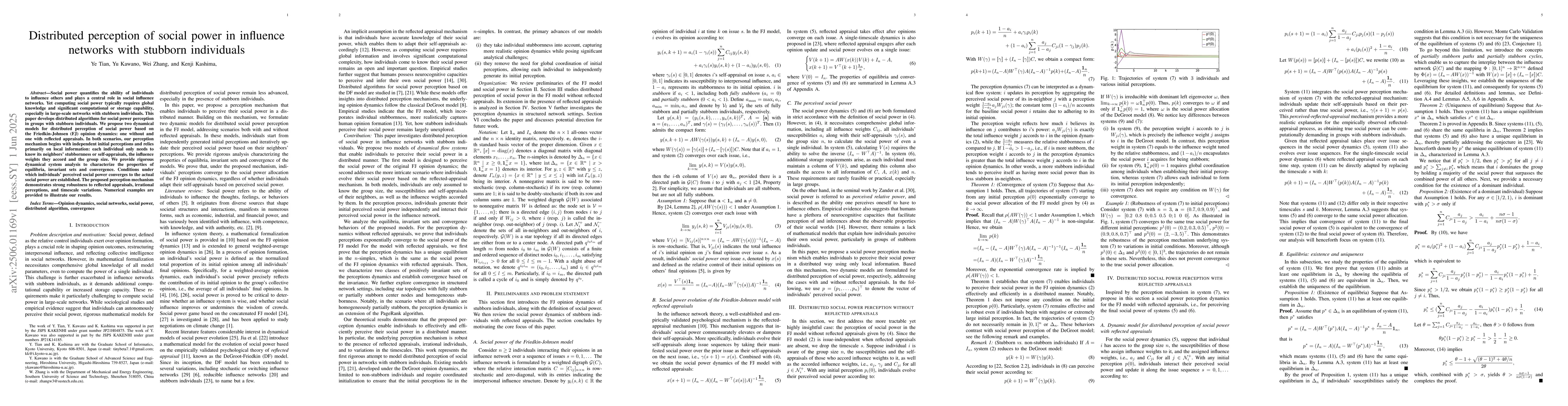 The paper presents distributed dynamical systems for social power perception, providing rigorous analysis of equilibria, invariant sets, and convergence properties.