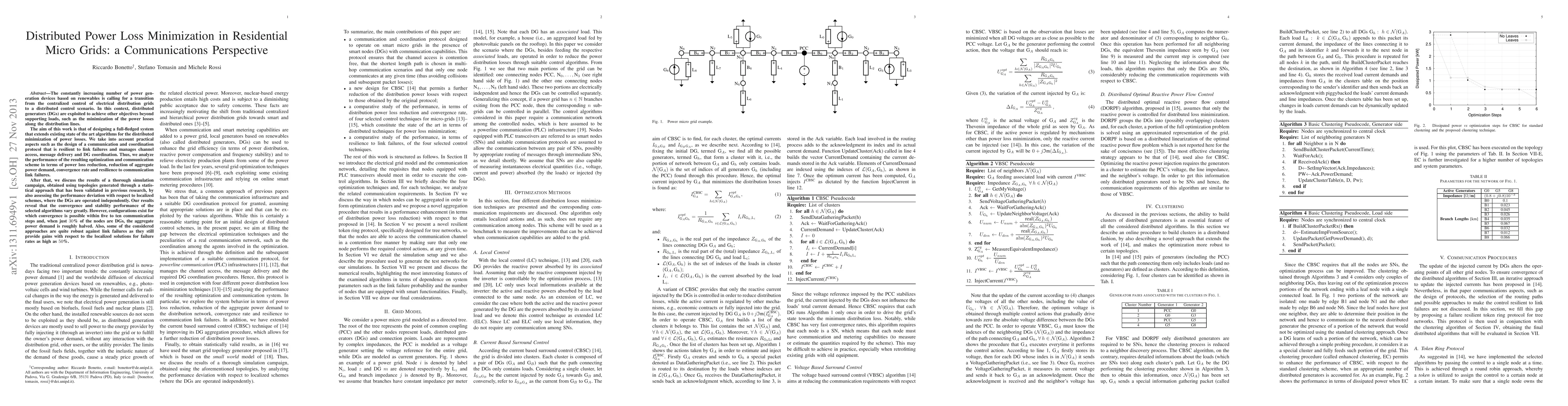 The constantly increasing number of power generation devices based on renewables is calling for a transition from the centralized control of electrical distribution grids to a distributed control scenario. In this context, distributed generators (DGs) are exploited to achieve other objectives beyond supporting loads, such as the minimization of the power losses along the distribution lines. The aim of this work is that of designing a full-fledged system that extends existing state of the art algorithms for the distributed minimization of power losses. We take into account practical aspects such as the design of a communication and coordination protocol that is resilient to link failures and manages channel access, message delivery and DG coordination. Thus, we analyze the performance of the resulting optimization and communication scheme in terms of power loss reduction, reduction of aggregate power demand, convergence rate and resilience to communication link failures. After that, we discuss the results of a thorough simulation campaign, obtained using topologies generated through a statistical approach that has been validated in previous research, by also assessing the performance deviation with respect to localized schemes, where the DGs are operated independently. Our results reveal that the convergence and stability performance of the selected algorithms vary greatly. However, configurations exist for which convergence is possible within five to ten communication steps and, when just 30% of the nodes are DGs, the aggregate power demand is roughly halved. Also, some of the considered approaches are quite robust against link failures as they still provide gains with respect to the localized solutions for failure rates as high as 50%.