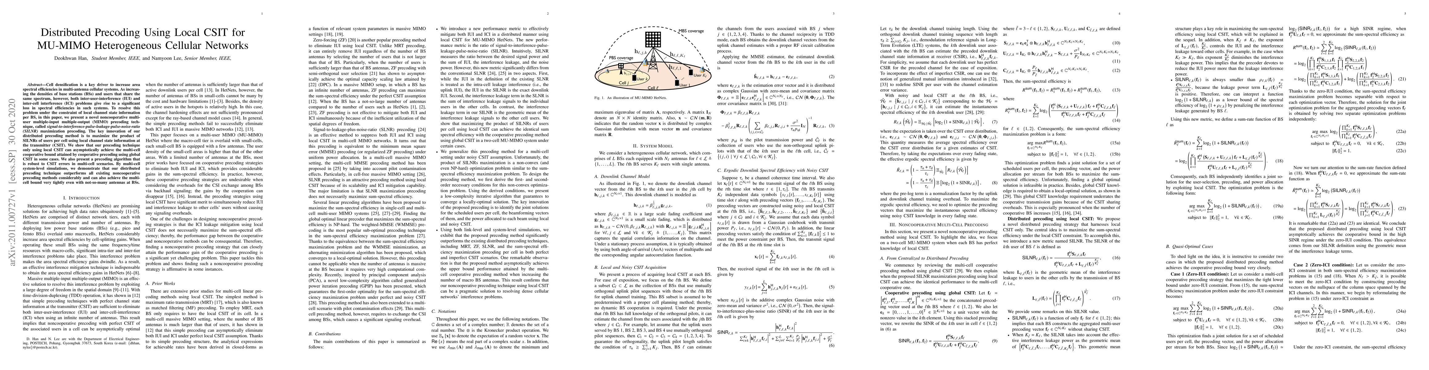 This paper proposes a novel distributed precoding technique called SILNR maximization for multi-user MIMO in dense cellular networks, aiming to maximize the product of signal-to-interference-plus-noise ratios using local channel state information. The method achieves near-optimal performance compared to cooperative precoding with global CSIT and outperforms existing noncooperative methods.