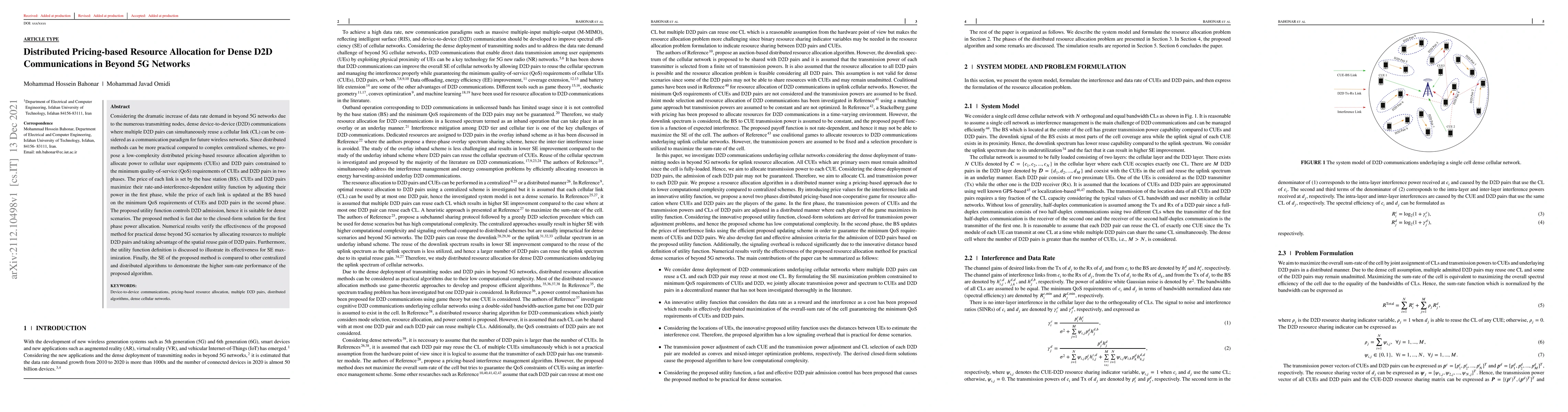This paper proposes a low-complexity distributed pricing-based resource allocation algorithm for dense device-to-device communications in beyond 5G networks, optimizing power allocation to maximize sum-rate while meeting QoS requirements. The method employs a closed-form solution for efficient power adjustment and dynamic pricing updates by the base station.